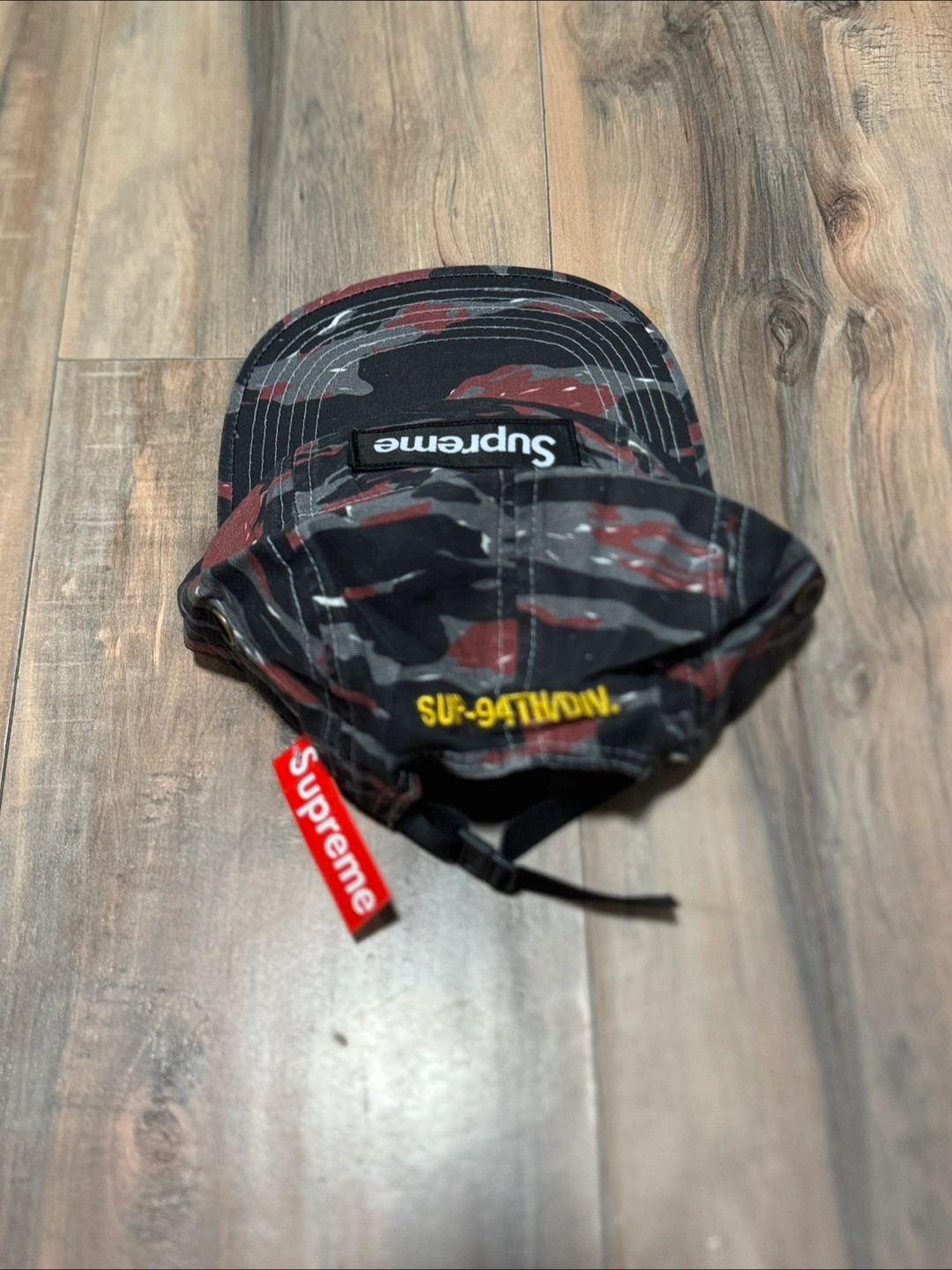 Supreme camp cap in a cool camo pattern! It's in great shape and ready for a new home. This stylish cap features the iconic Supreme logo and a comfortable fit. Perfect for adding a touch of streetwear to any outfit!