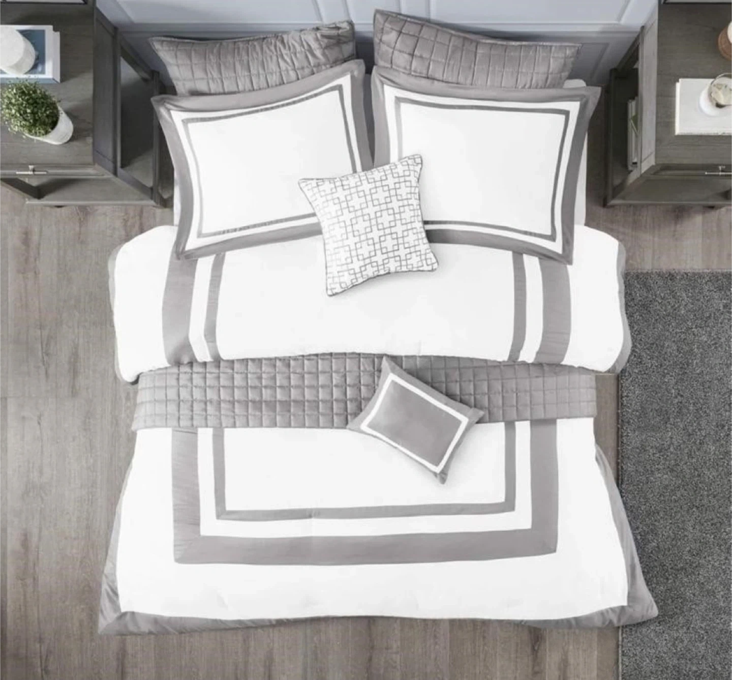 9Modern Luxury Design, All Season Down Alternative Bedding, Matching Shams, Decorative Pillows, King/Cal King(104"x92"), Color Block Grey 8 Piece