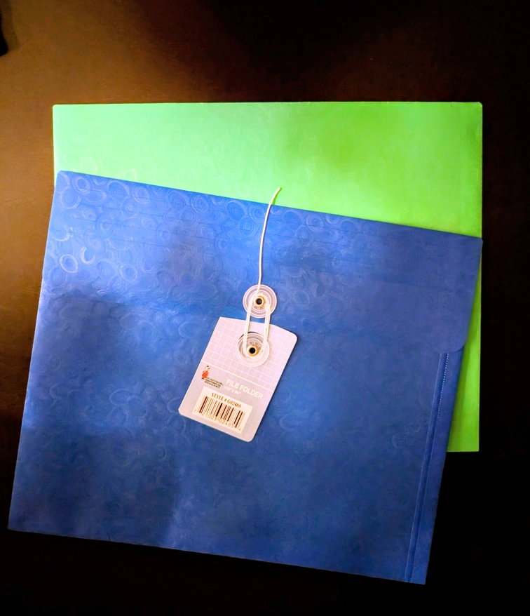 Two file folders are free, one blue and one green, ready to keep your documents organized!