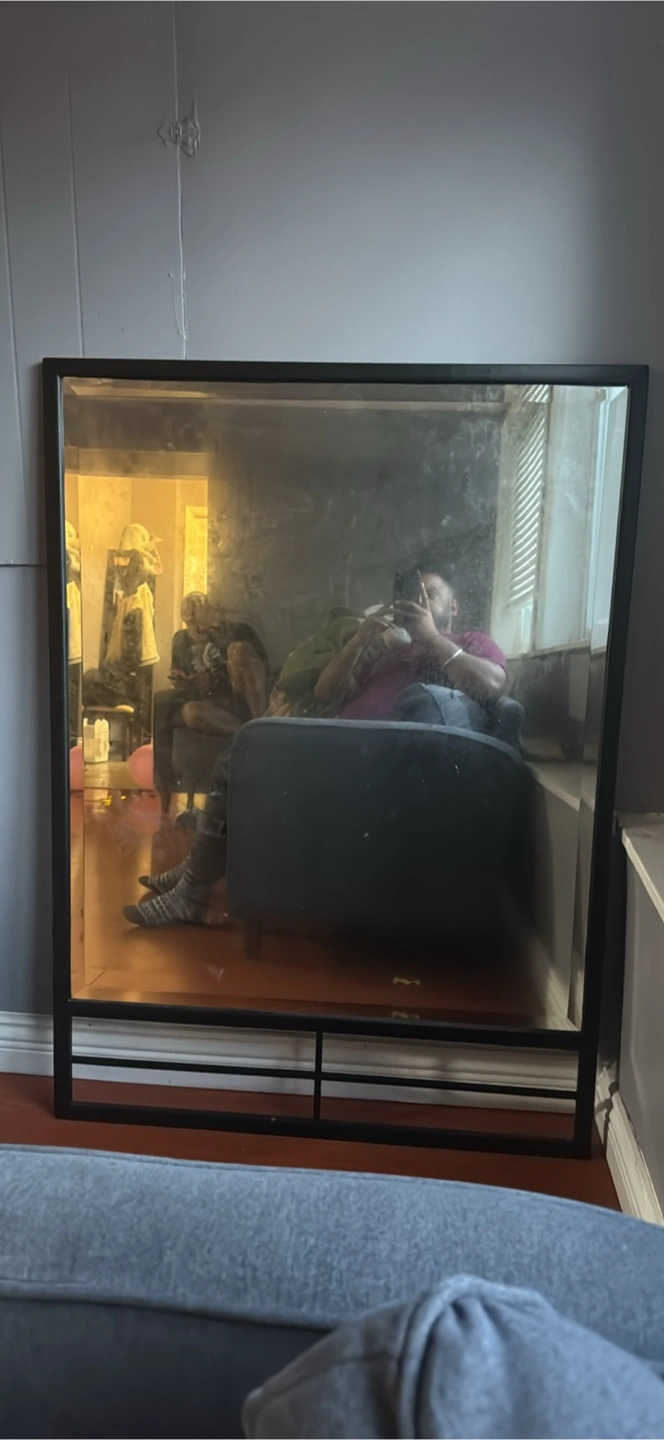 Selling a large mirror with a black frame. It's in good condition and would look great in the entrance of the main door and room.
