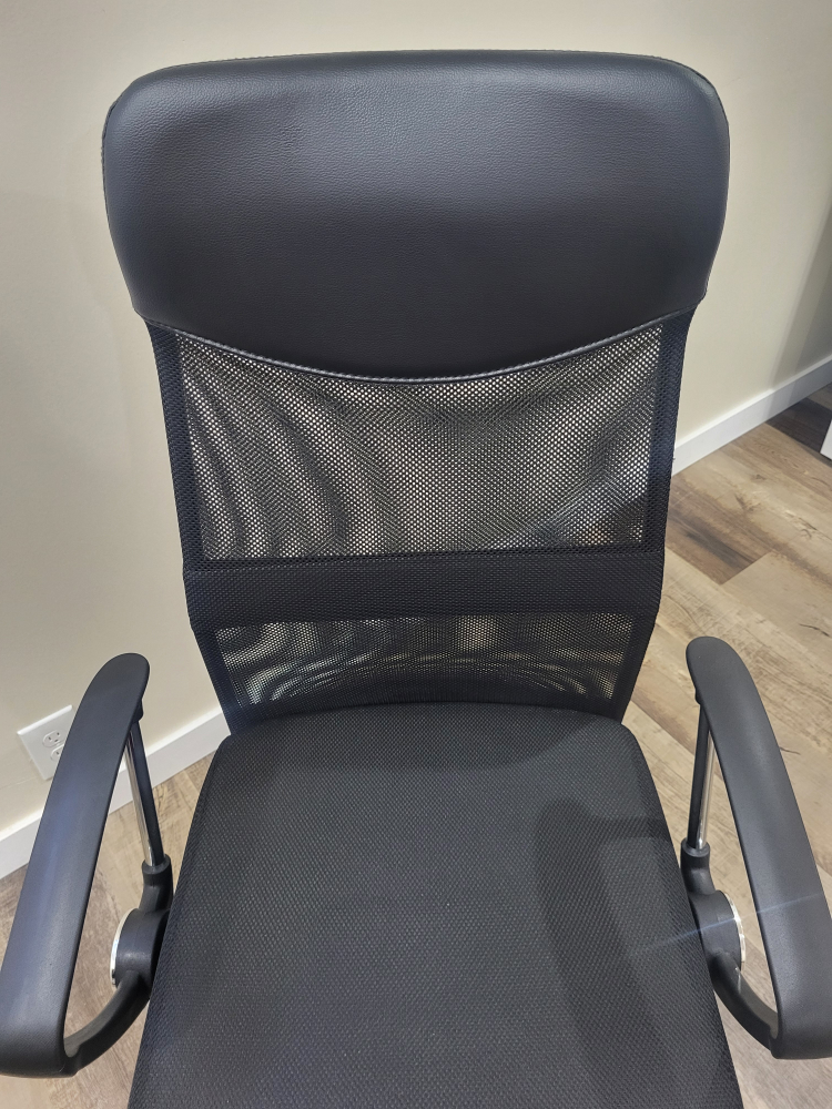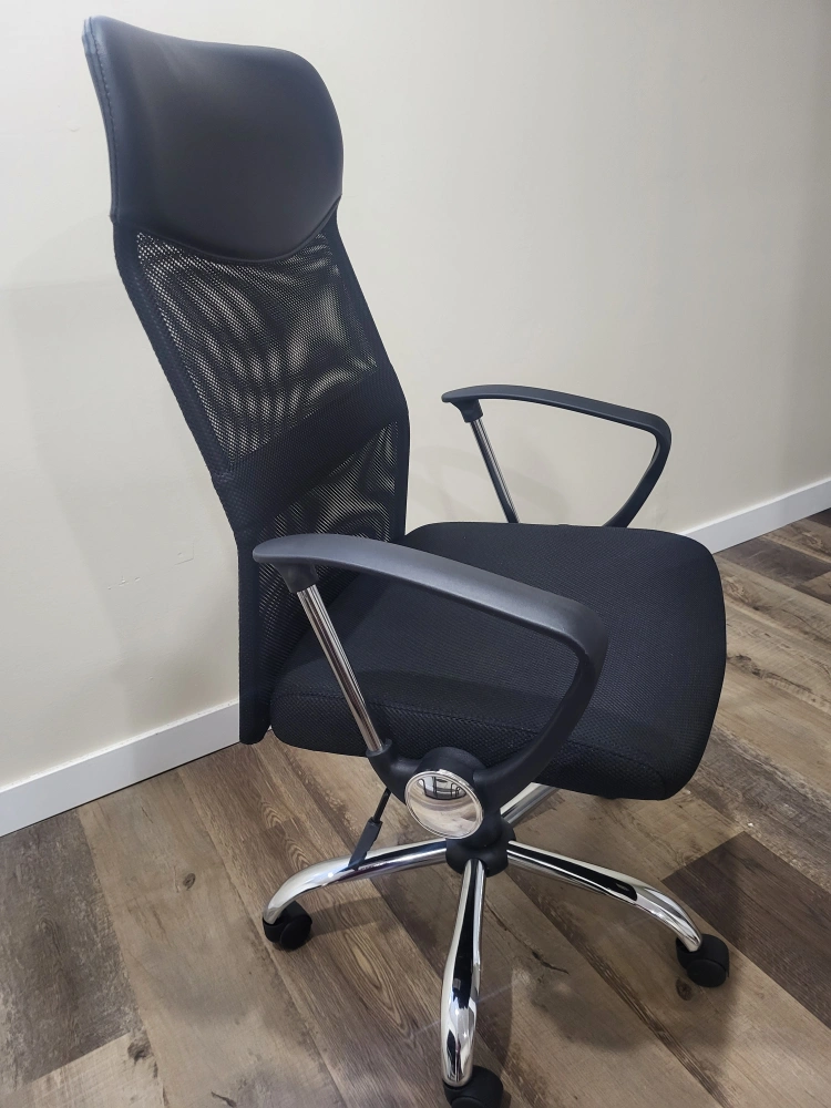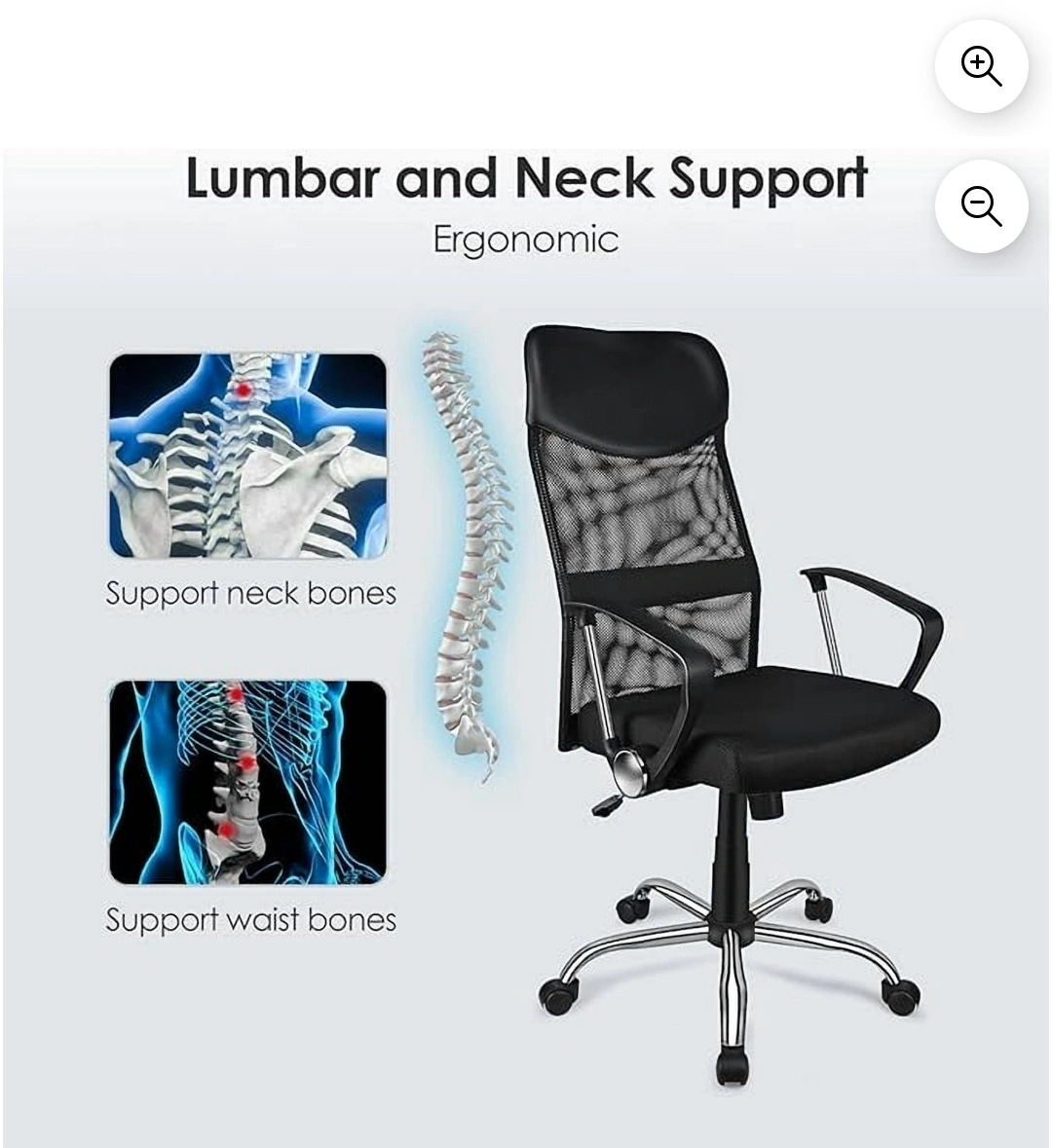 This ergonomic office chair is designed for lumbar and neck support, making it perfect for long workdays. The chair features a mesh back for breathability and a comfortable seat cushion. It includes adjustable height and armrests for a customized fit. The dimensions are approximately 17.7" (45cm) wide, 17.3" (44cm) high, and 23.2" (59cm) deep. The seat height is adjustable from 15" to 18.5" (38-47cm).