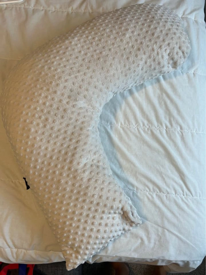Jolly Jumper Boomerang Shaped Nursing Cushion is ergonomically designed to provide ultimate comfort while breastfeeding. Baby can be moved from one side to the other without repositioning the cushion, making this the ideal breastfeeding cushion for twins. Multi-purposes include sleep positioning for pre and post-pregnancy moms, sitting prop for babies, positioning pillow for sitting as well as breastfeeding.