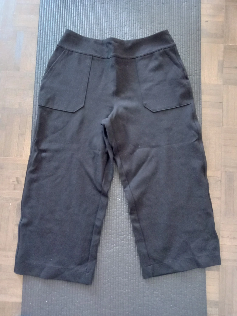 277Selling a pair of Joe Fresh black culottes in size L. They're in great condition and ready for a new home! The material is soft and comfortable, perfect for everyday wear. They feature a stylish design with functional pockets.