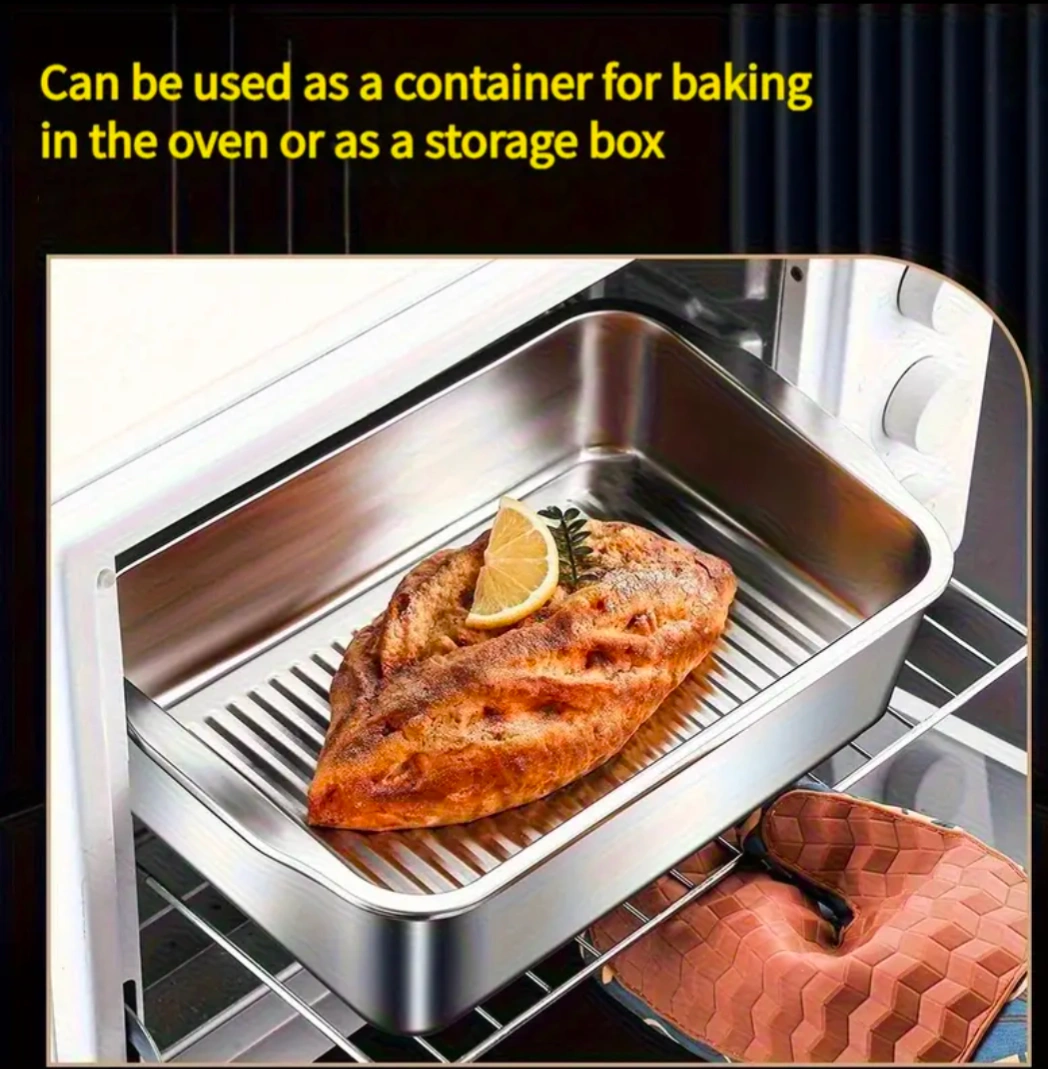 This stainless steel food container is perfect for baking, storing, and steaming!