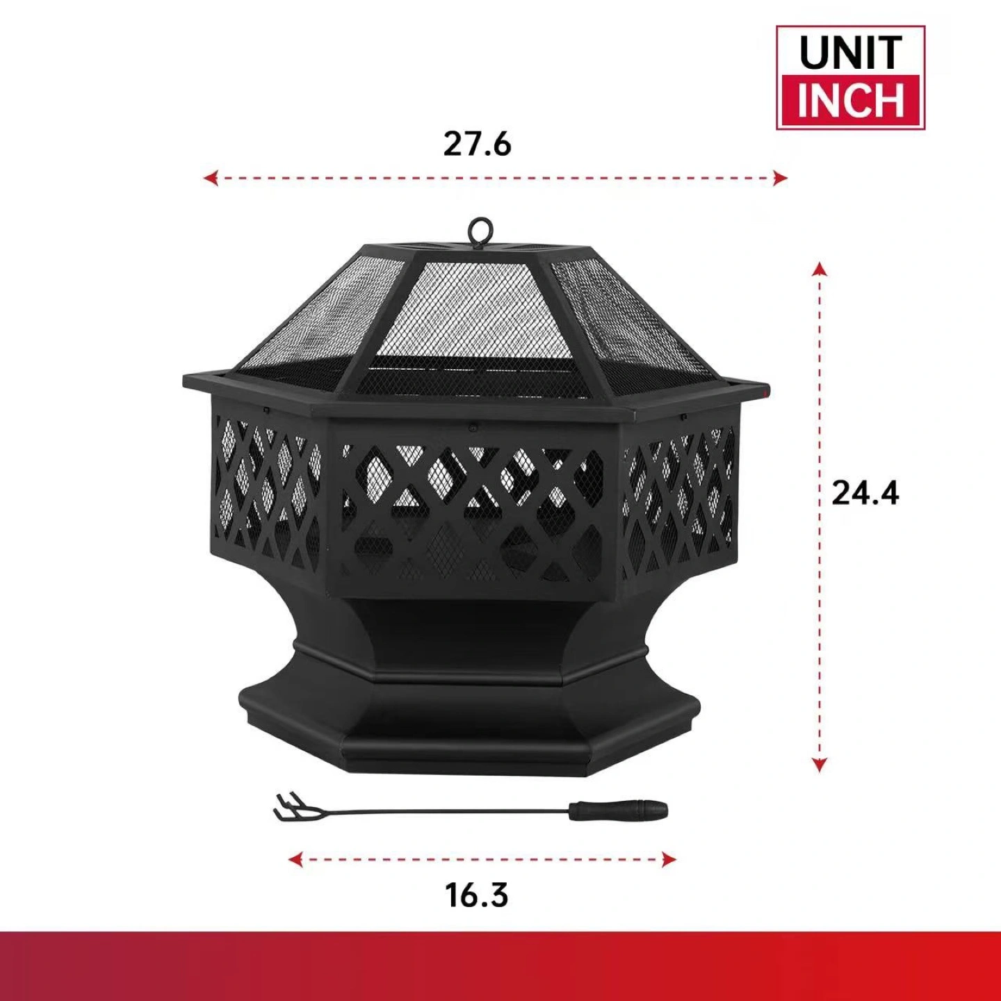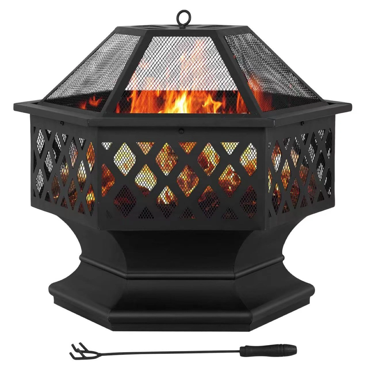 New Outdoor Fire Pit 28" Patio Fire Pit Wood Burning Metal Fire Bowl Round Garden Stove with Charcoal Rack, Poker & Mesh Cover for Camping Picnic Bonfire Backyard,Black