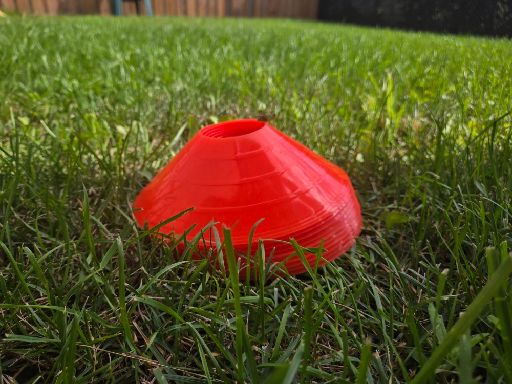 I'm selling a set of 10 red training cones. They're perfect for sports training, agility drills, or marking boundaries. Barely used, like new.