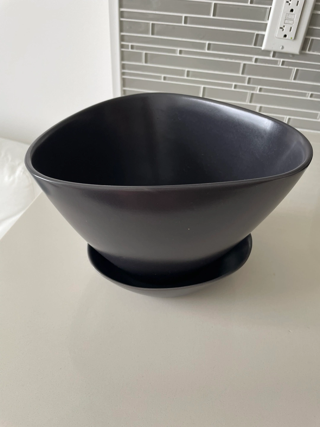Looking to add a touch of modern elegance to your space? I'm selling a sleek black ceramic planter that comes with its own matching tray. It's in great condition and ready to house your favourite plant. Perfect for any room!