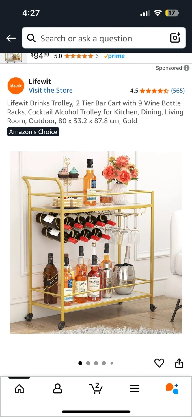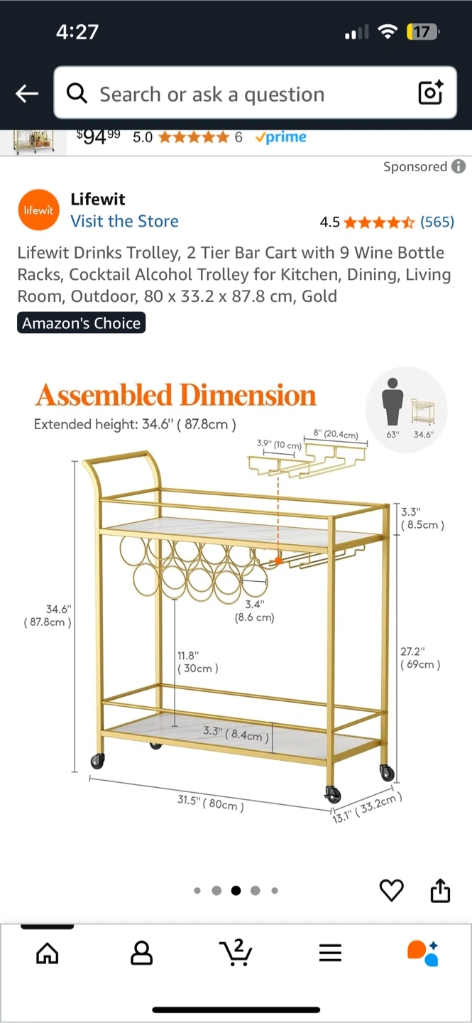 Buy & SellGold bar cartGold bar cart$90Practically brand new, bought it but then thrifted one I liked more Dimensions: L x W x H 80 x 33.2 x 87.8 cmWHERE TO MEETLongosView MapSELLERverifiedNikkiYonge St.Clair975 reviews2 chats·5 favorites·71 viewsSEND CHAT TO SELLERHi Nikki! I’m interested in your listing.Hi Nikki! I’m interested in your listing.Get the Karrot app to chatSign In to chat