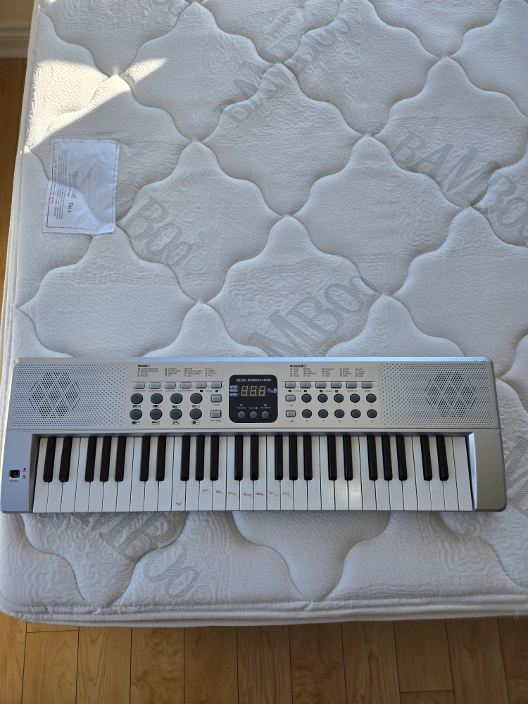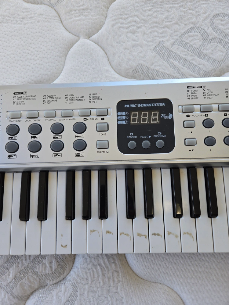 Selling a music workstation keyboard. It has some wear and tear, as shown in the photos, but it still works great! Perfect for beginners or anyone looking for a fun and easy-to-use keyboard