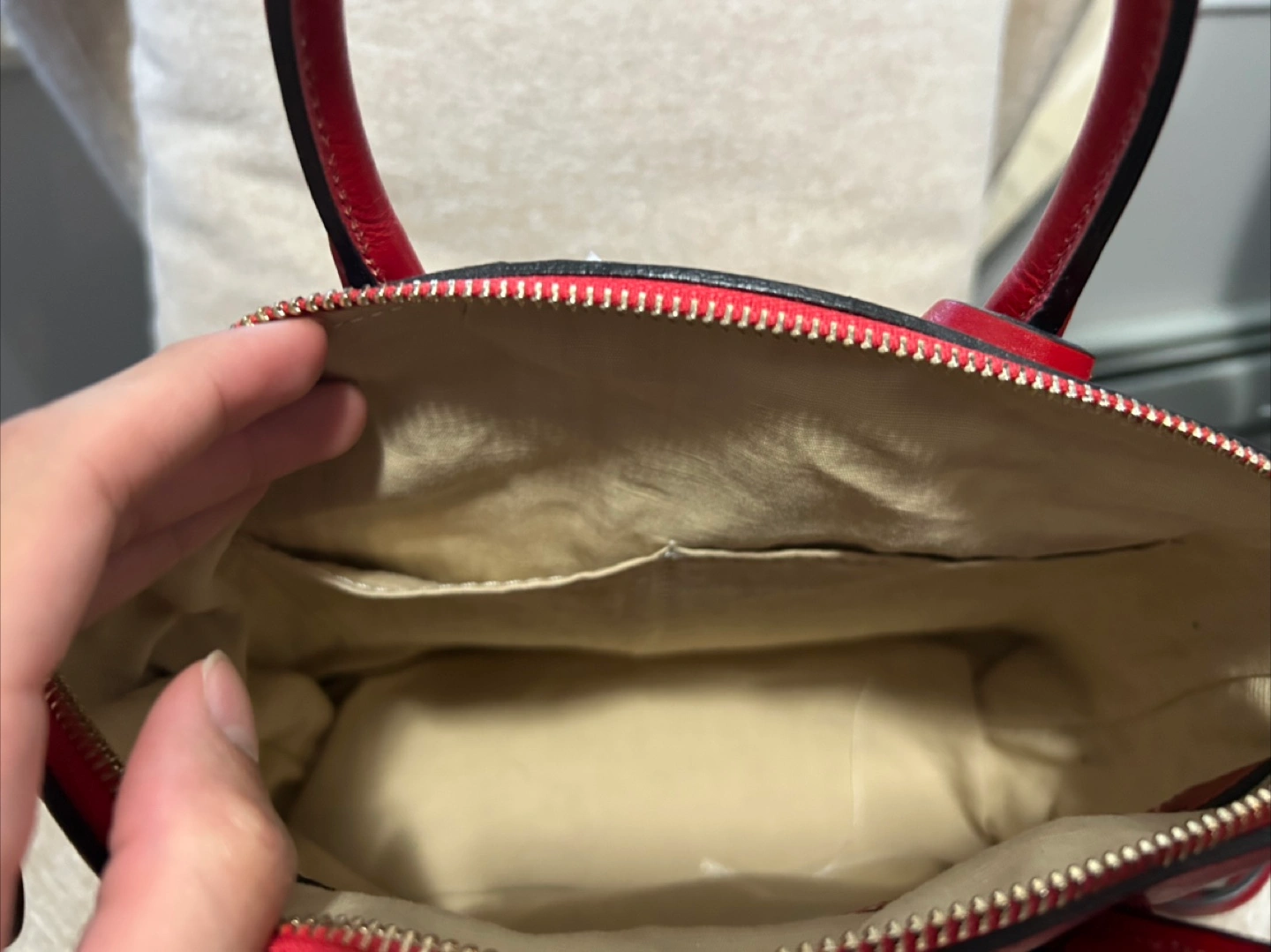 A lovely red leather handbag in great condition! It features a top handle and also comes with a detachable shoulder strap, so it can be worn as a crossbody bag too. Perfect for adding a pop of colour to any outfit!
