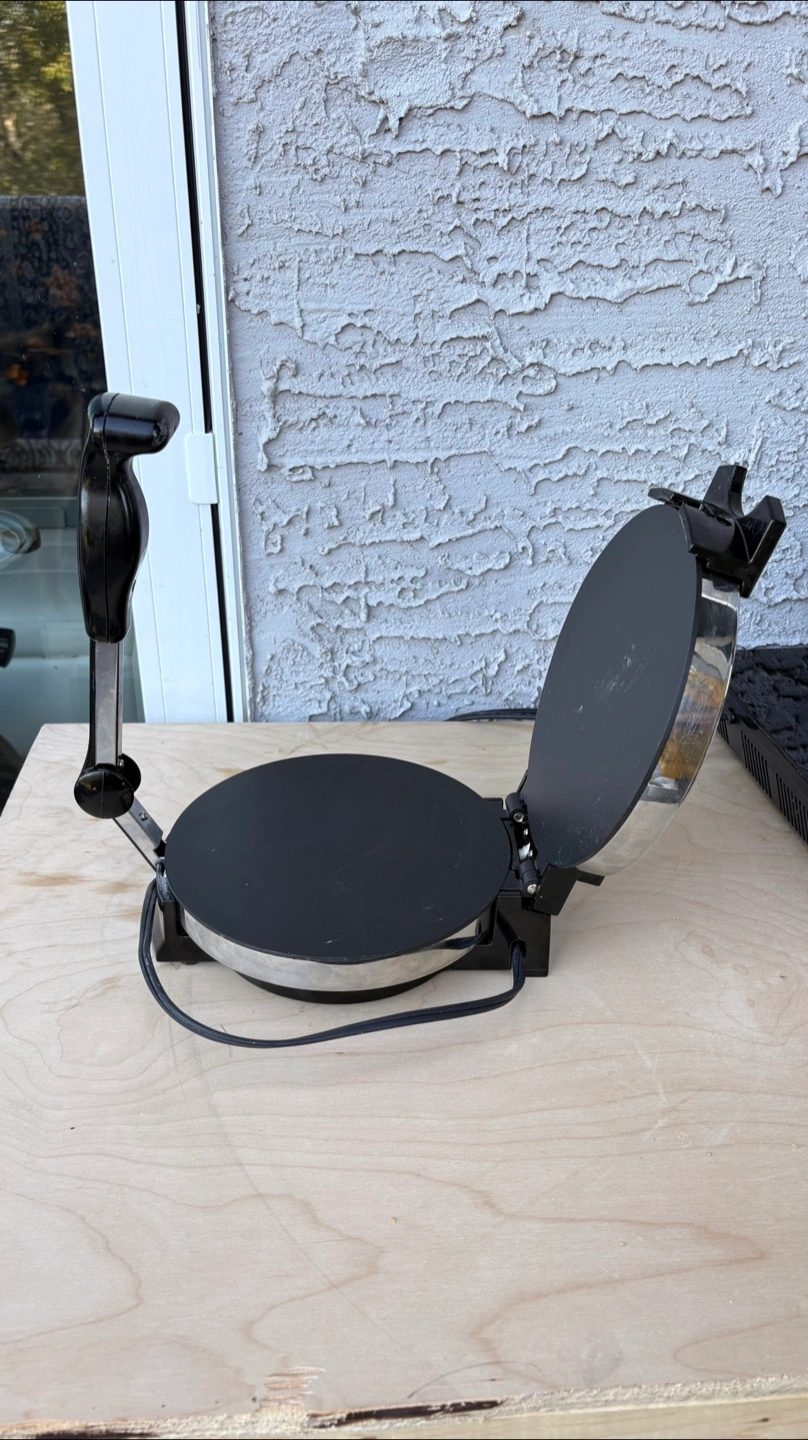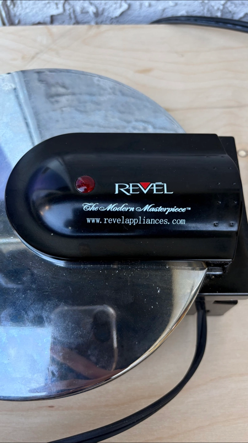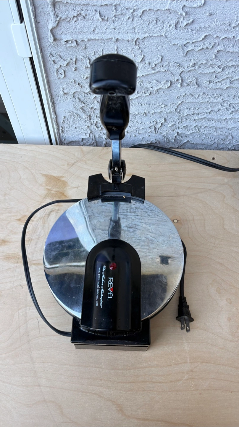 Selling a Revel waffle maker, model The Modern Masterpiece. It's in good working condition, used maybe once. It's easy to use and clean. It features a non-stick surface, adjustable temperature control, power and pre-heat indicator lights, and a durable press handle