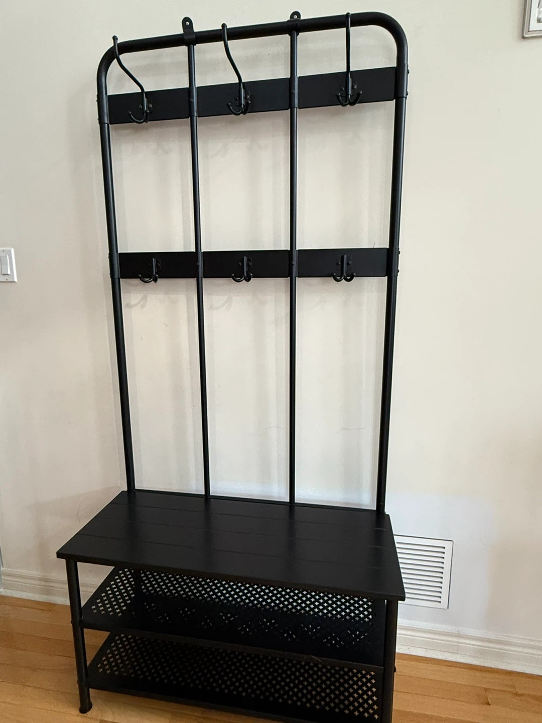 107❗If this post is up, it’s still available. First come, first served. 🚫 No holds. 🔧 Please bring help to move/load items and vehicle that will fit item. It comes with a built-in shoe storage shelf, also seating. It’s perfect for keeping your entryway organized or mudroom. It's in great condition, already assembled and ready for a new home. 75 inches height 35 1/2 width 15 depth