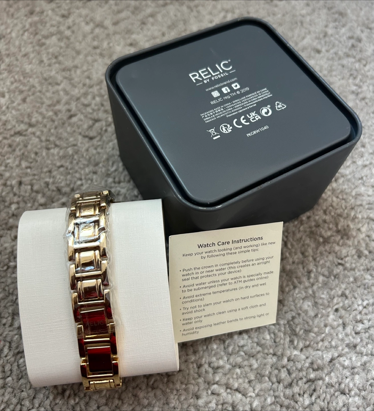 Brand New RELIC by FOSSIL Watch Gold Color Crystal surrounding Case