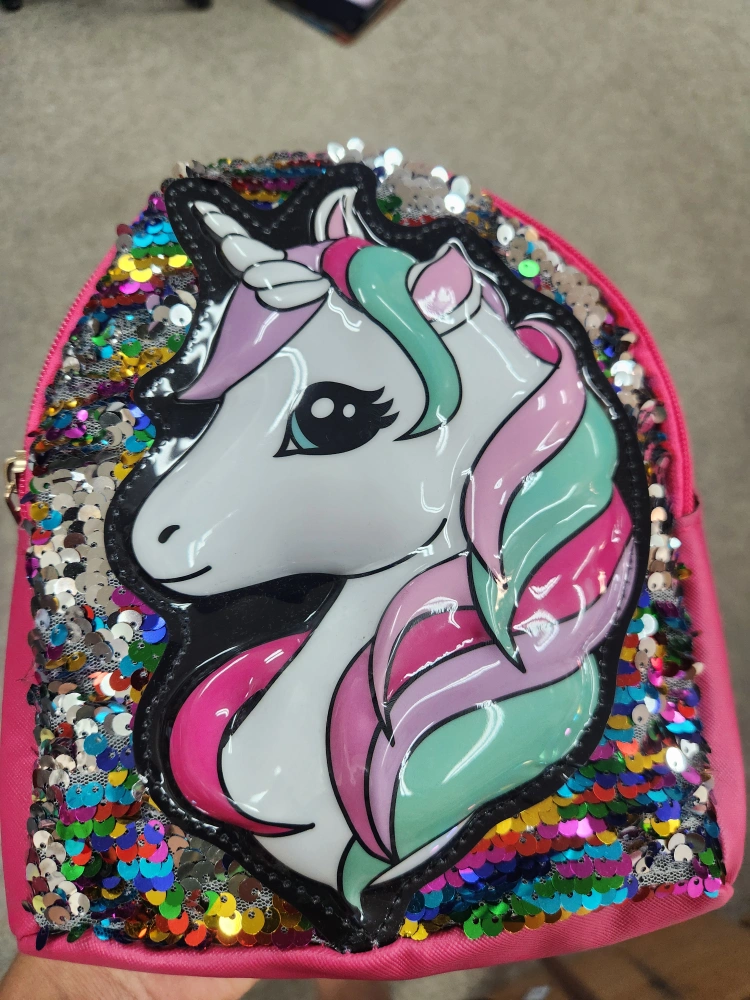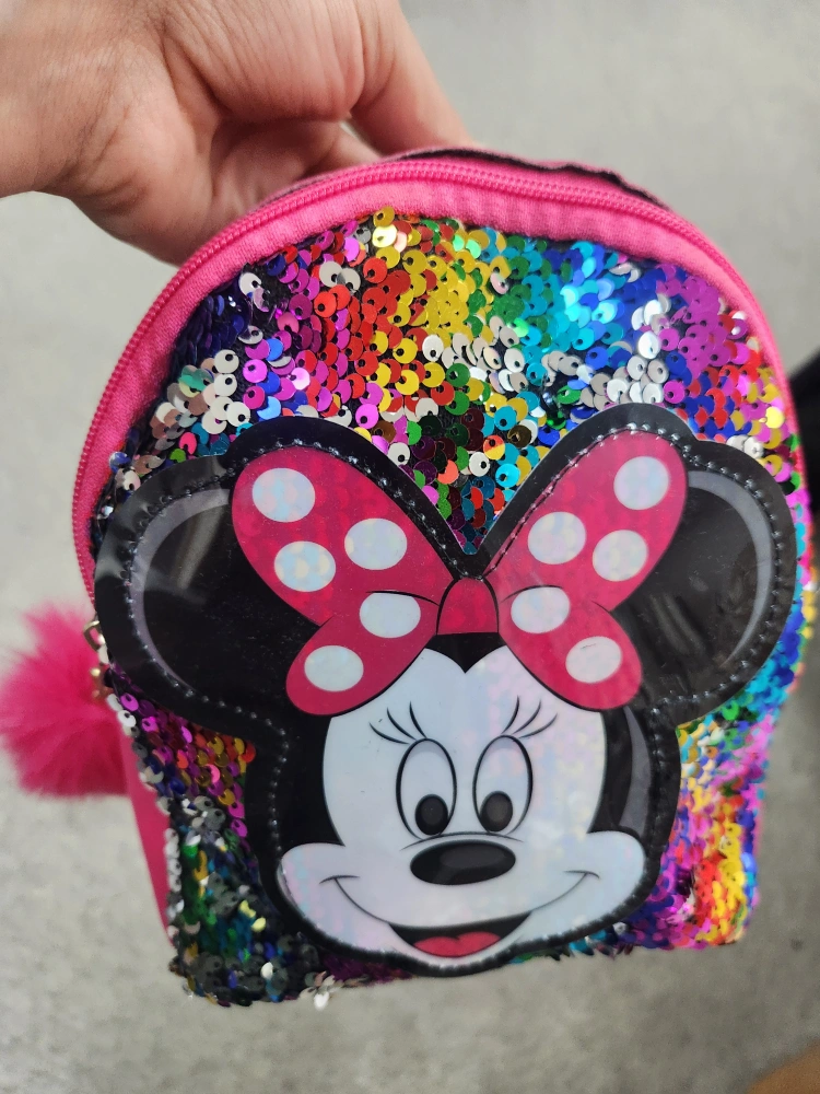 Super cute mini backpacks for kids! They feature fun sequin designs with Hello Kitty, a unicorn, and Minnie Mouse.