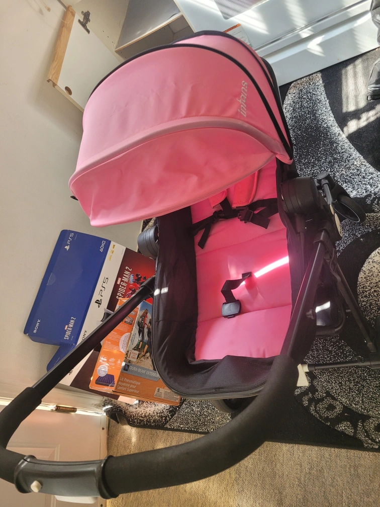 Selling a cute pink baby jogger stroller! It's in great condition and ready for your little one's adventures. Perfect for walks around the neighbourhood or trips to the park. 0 to 12 months.