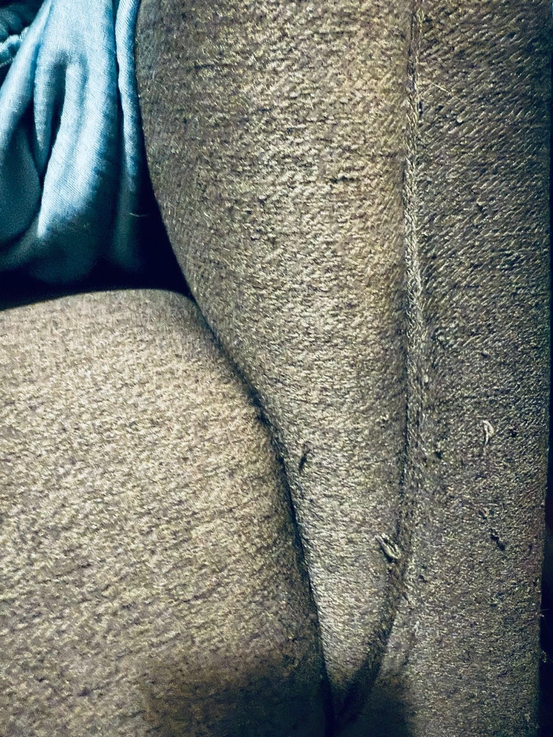 Selling a gently used grey fabric sofa. It has a tufted back and a comfortable design. There are some signs of wear on the armrests, as shown in the pictures. Still a great piece for a living room or den! And has cover that blue cover too