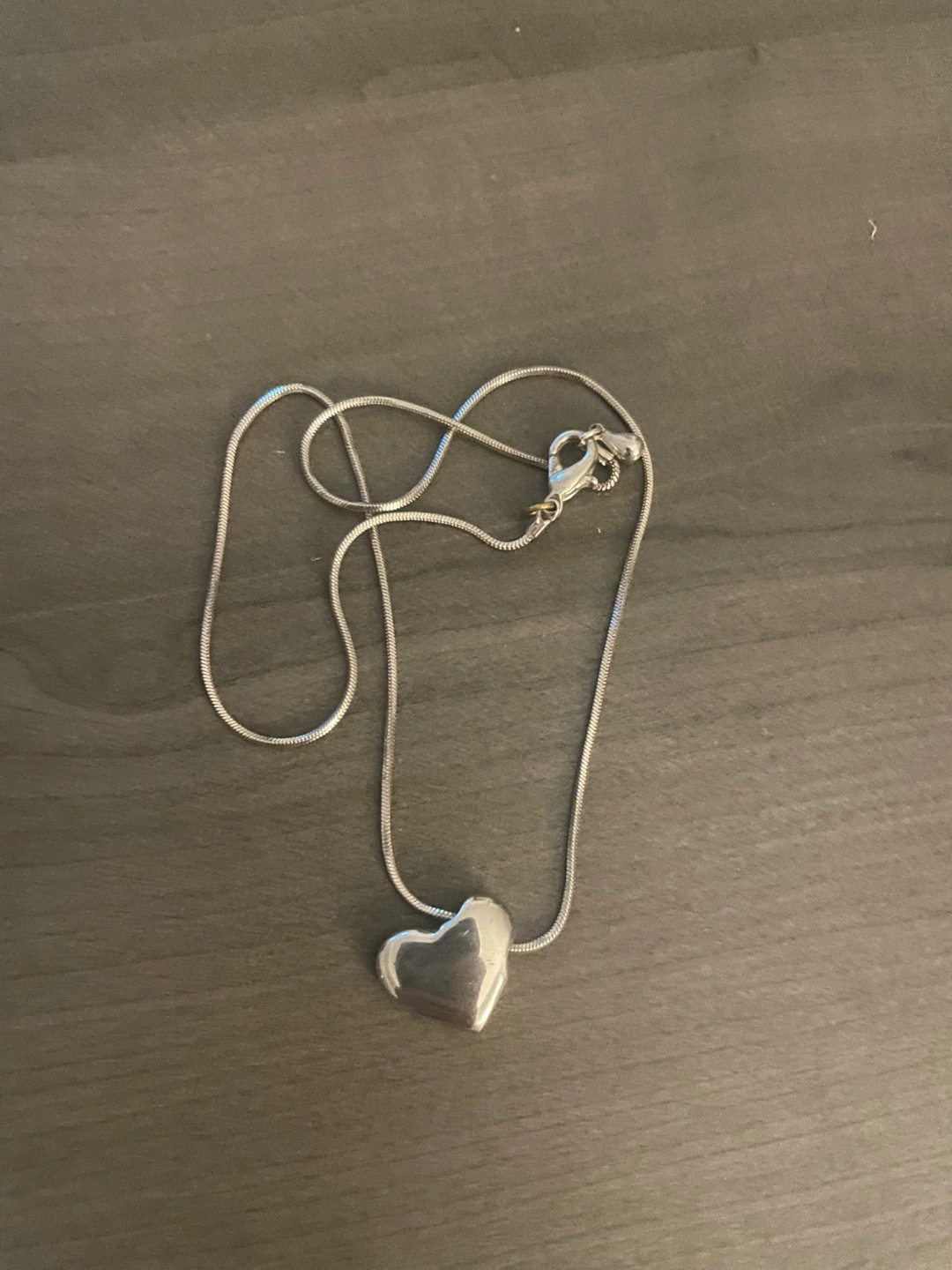Selling a 16” vintage silver heart pendant necklace. It's in great condition. The pendant is a nice size, as you can see next to the quarter for scale. Pickup Yonge/7 or Keele/7