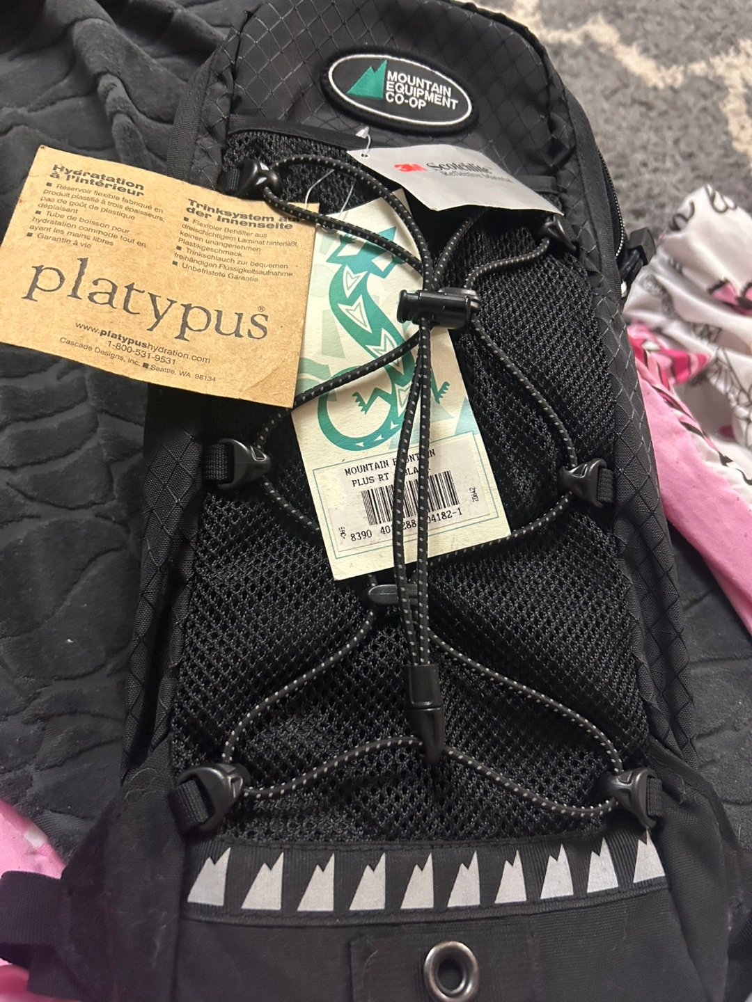 I'm selling a brand new Platypus Mountain LA 6 Hydration Pack! It's never been used and still has the tags attached. This black pack is perfect for hiking and other outdoor adventures. It features a hydration reservoir and plenty of storage space. Get ready for your next adventure!
