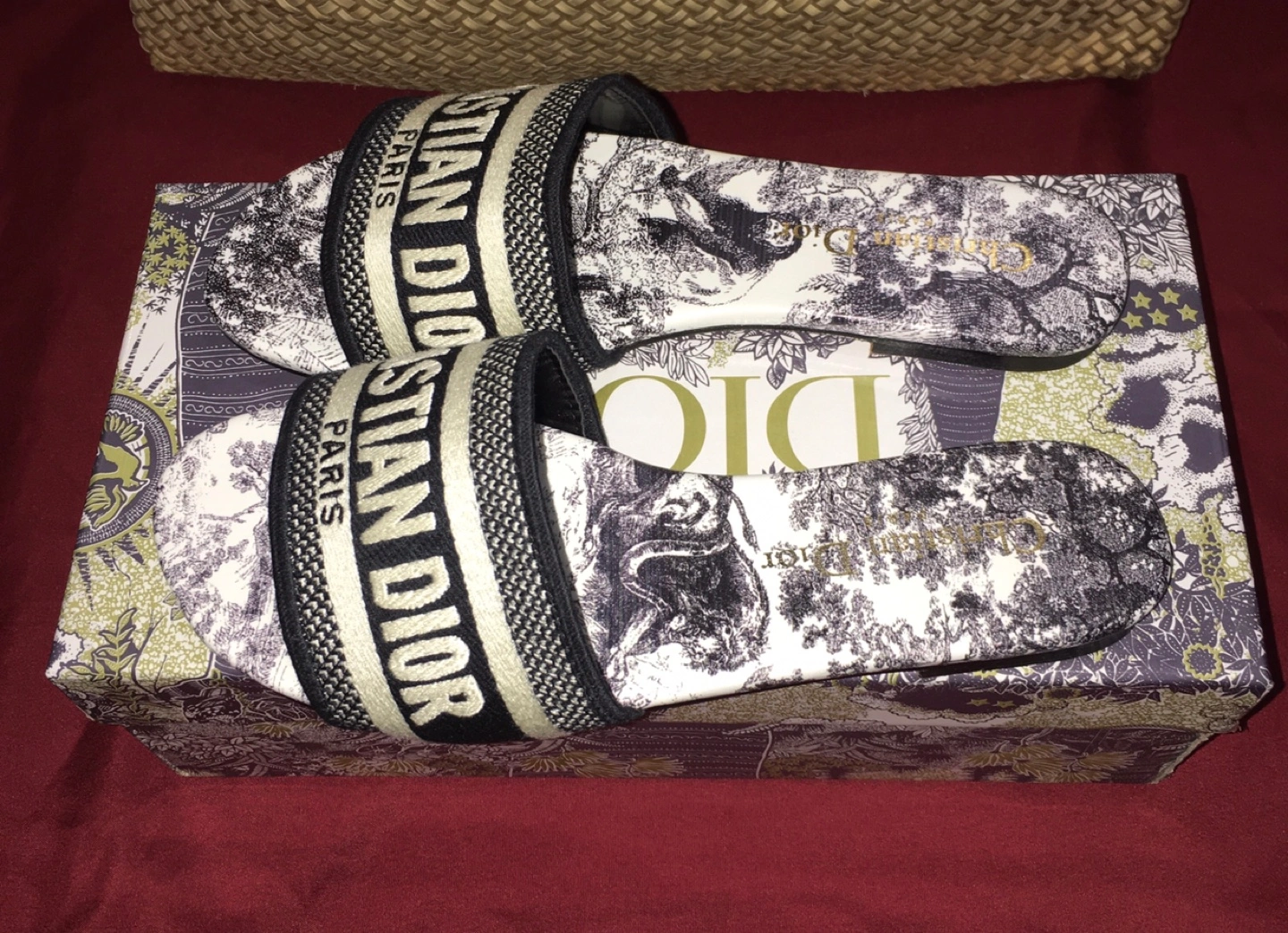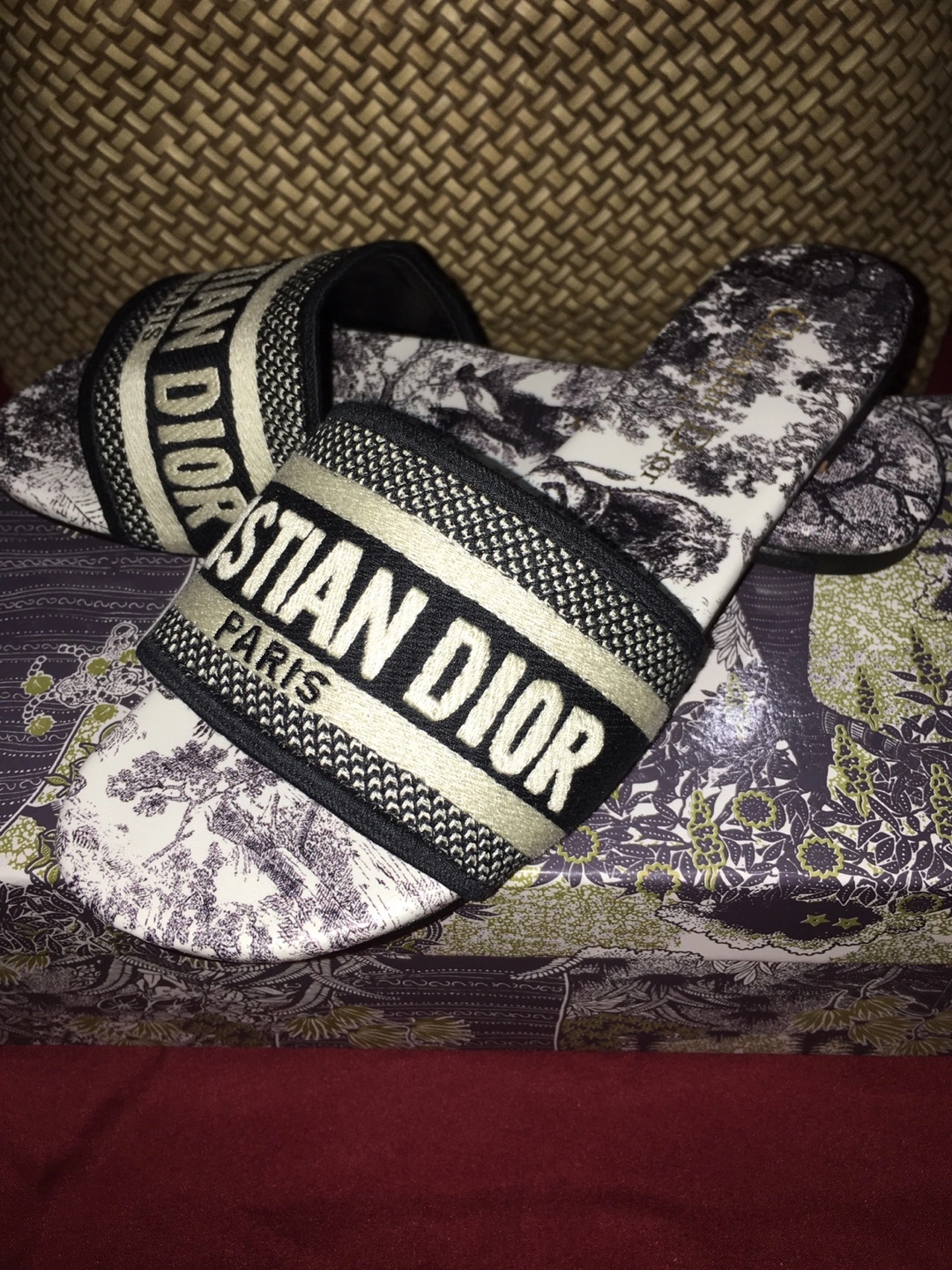 Here are a pair of Paris slides. They come with the original box. The slides feature the iconic Oblique pattern. They're in great brand new condition.