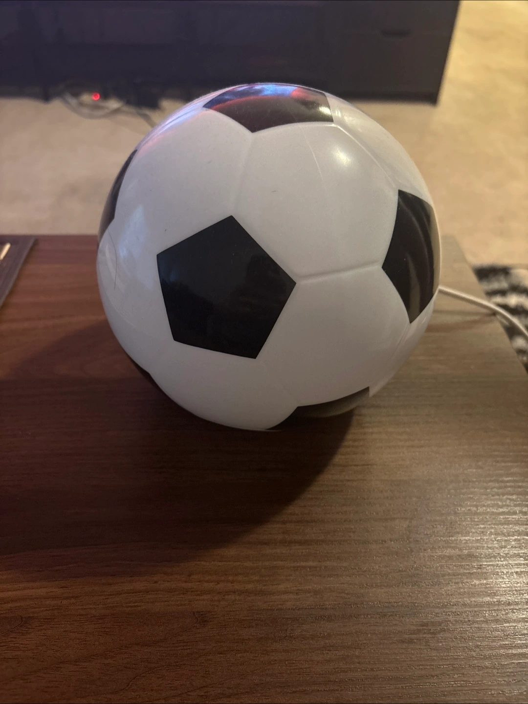 Here's a cute soccer ball night light! It's in great condition and would be perfect for a kid's room or any soccer fan. It gives off a soft, comforting glow