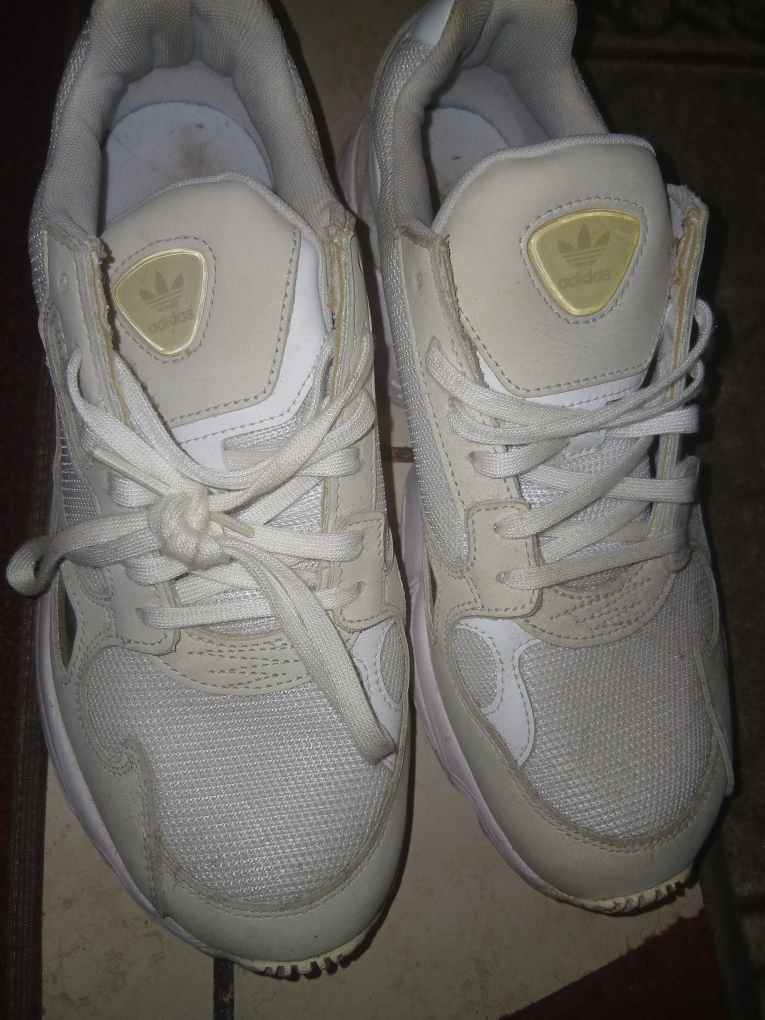 Selling a pair of Adidas Falcon sneakers in off-white. They're in good condition and ready for a new home. The size is US 8. available bit dirty but its cleanable and bring it back to fresh white color like before. price is negotiable, selling for $55