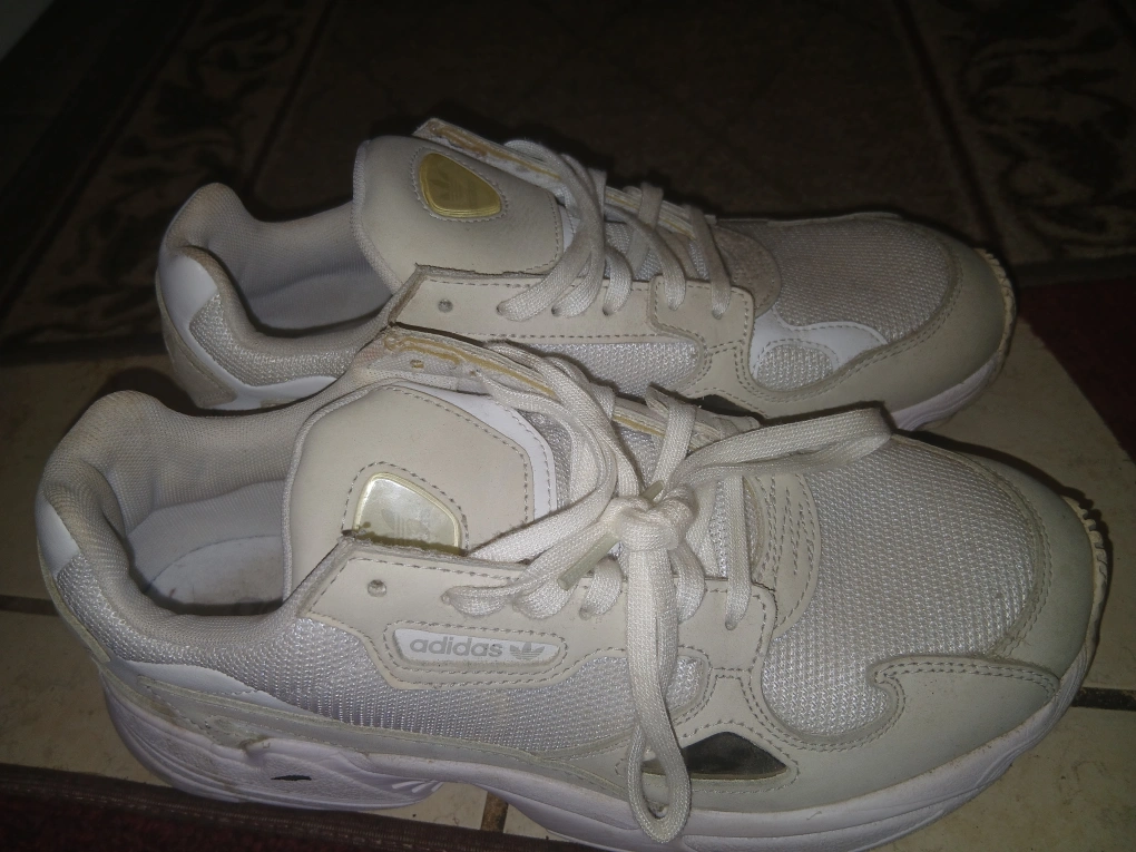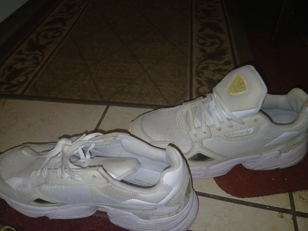 Selling a pair of Adidas Falcon sneakers in off-white. They're in good condition and ready for a new home. The size is US 8. available bit dirty but its cleanable and bring it back to fresh white color like before. price is negotiable, selling for $55