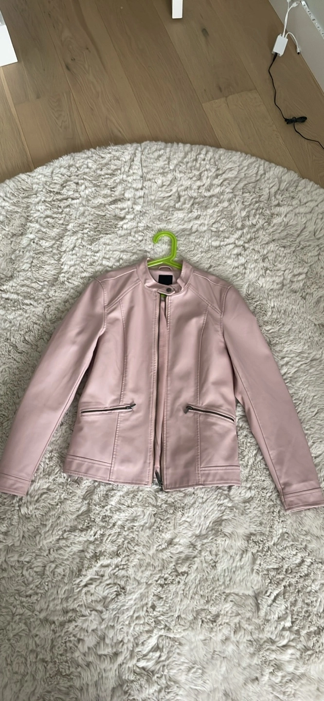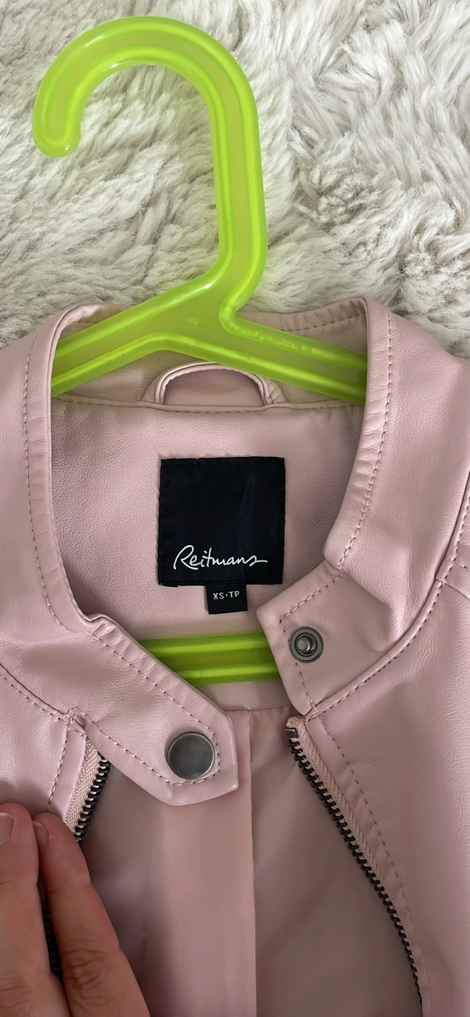 Here's a cute Reitmans pink faux leather jacket in size XS! It's perfect for adding a touch of style to your wardrobe. The jacket features a sleek design with zipper details.
