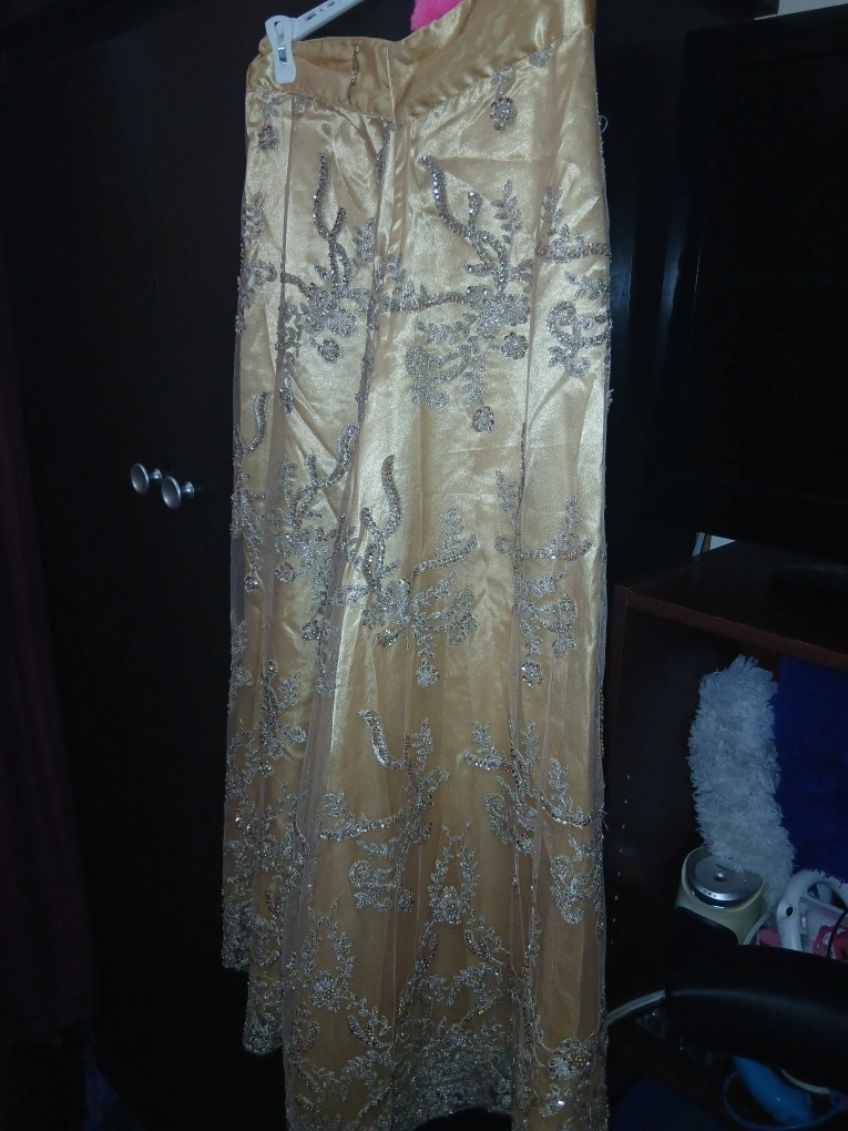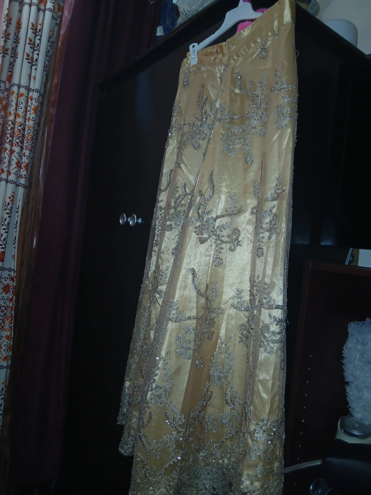 Golden Beaded Party Long Skirt (Handmade)
