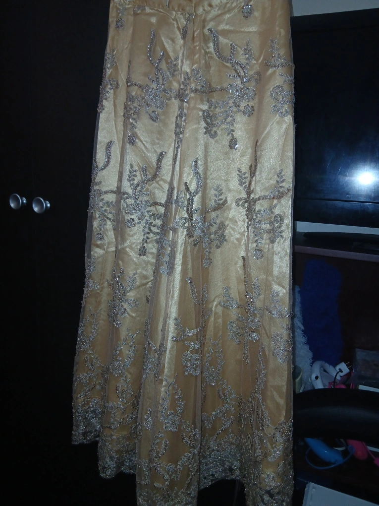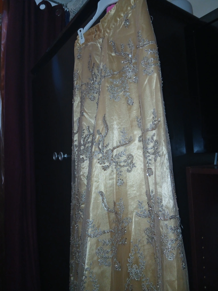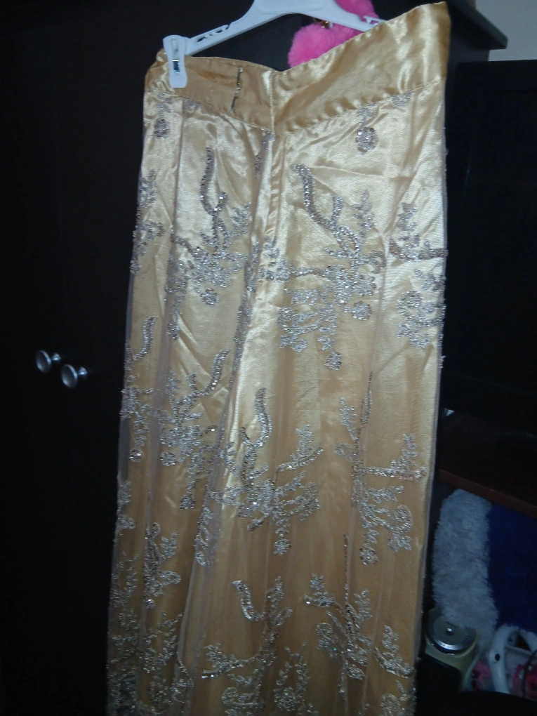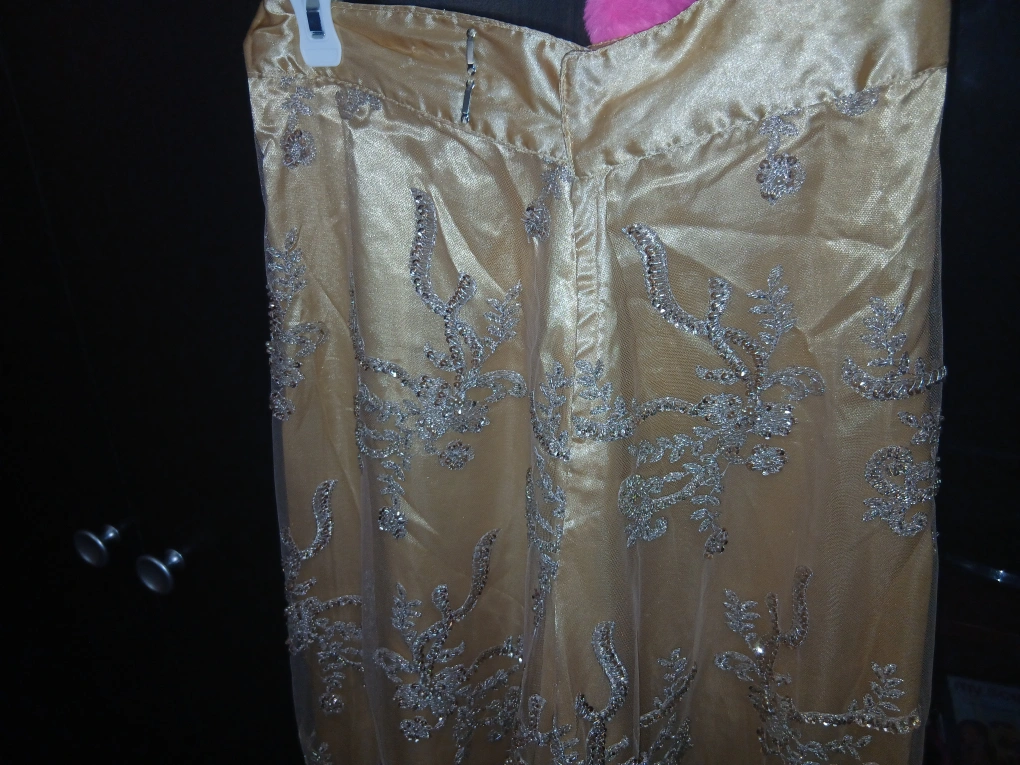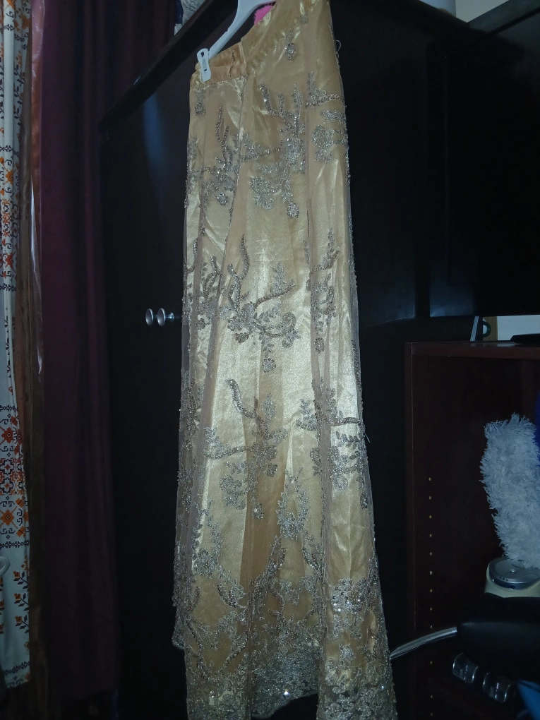 such a beautiful creation by me, an exotic stunning rich fancy queen goddess vibes skirt will have everyone staring at you at any event. I handmaded and created this design for myself to wear at parties, picked the fabric and detailing and beaded mesh fabric then sewed it together, this is not from any store when I made it myself. this is a beautiful evening skirt with silver beading and a gold tone. It is in great condition and perfect for a special occasion and any party ✨️ only worn once which was to a party. selling for $90