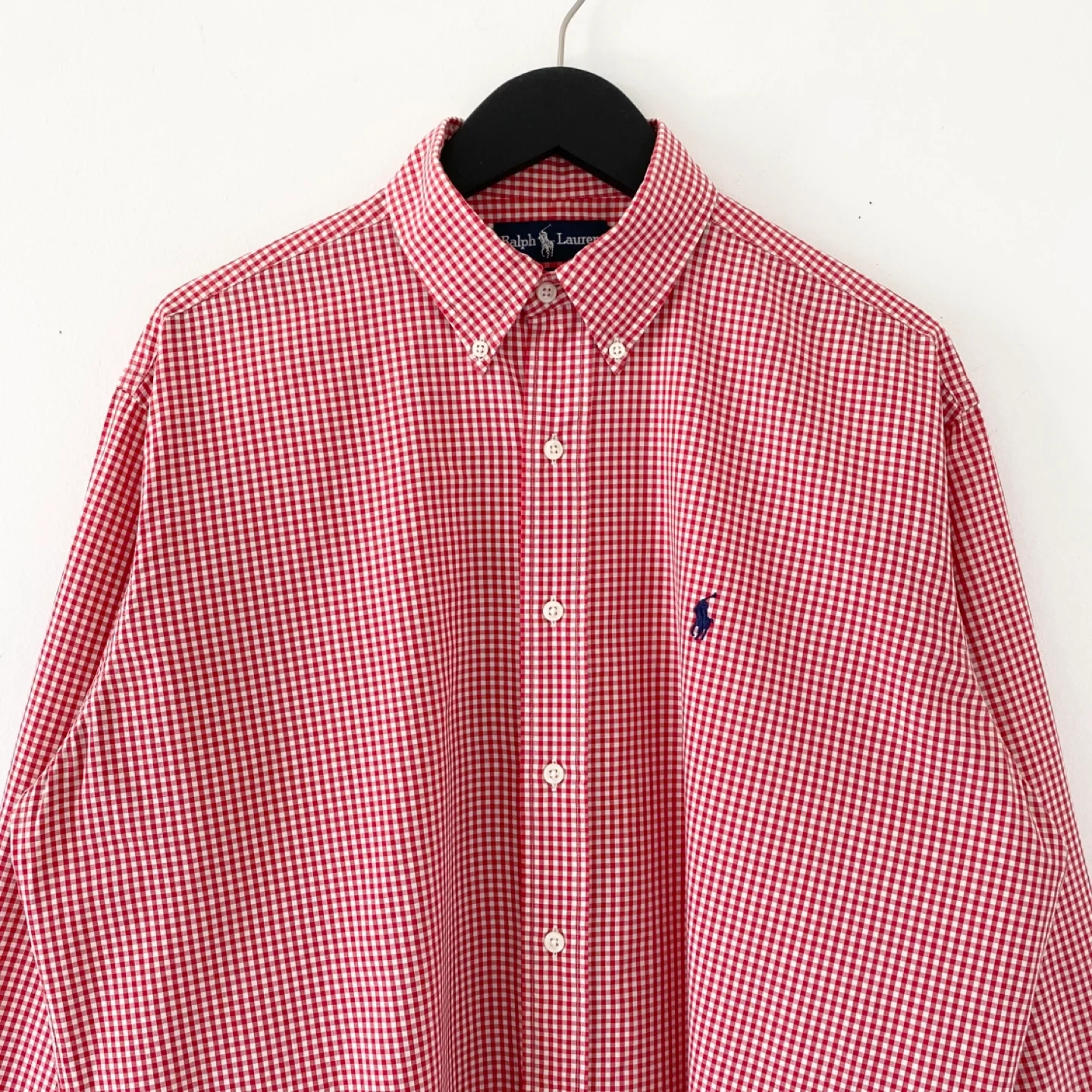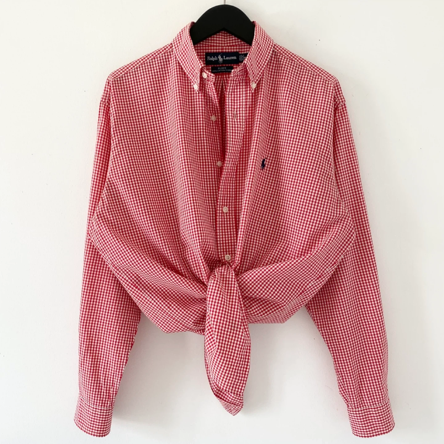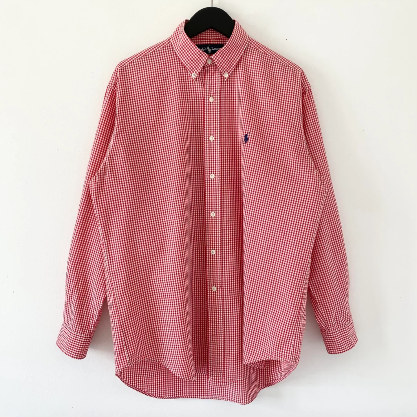 615Pick up only in Leslieville (Queen and Pape) Check out other listings! Ralph Lauren button-up shirt. Made of lightweight 100% cotton in a red and white gingham. Can be styled many ways and worn all year around. Well made - inside seams are finished with french seams. There’s no staining or damage. It is clean and in excellent condition. Size M (men’s) Approximate measurements laid flat Shoulder 20” Pit to pit 25” Shoulder to cuff 23.75” Center back length 32.75”