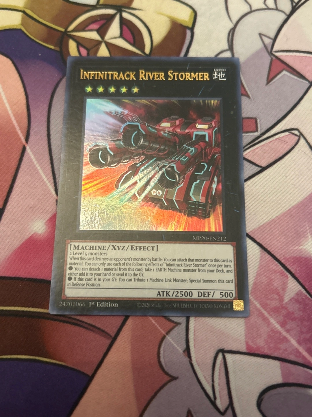 313Selling an Infinitrack River Stormer Yu-Gi-Oh! card. It's a Machine/XYZ/Effect monster with 2500 ATK and 500 DEF. This card is from the 1st Edition set.