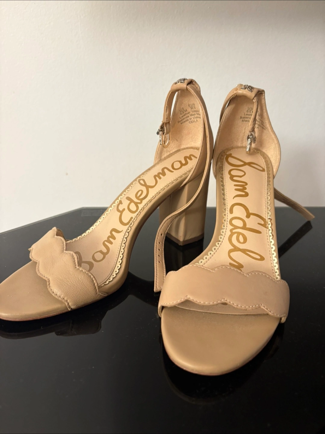 These Sam Edelman heels are a lovely beige colour and in great condition! They're a US size 6.5M and made of leather. Perfect for adding a touch of elegance to any outfit!