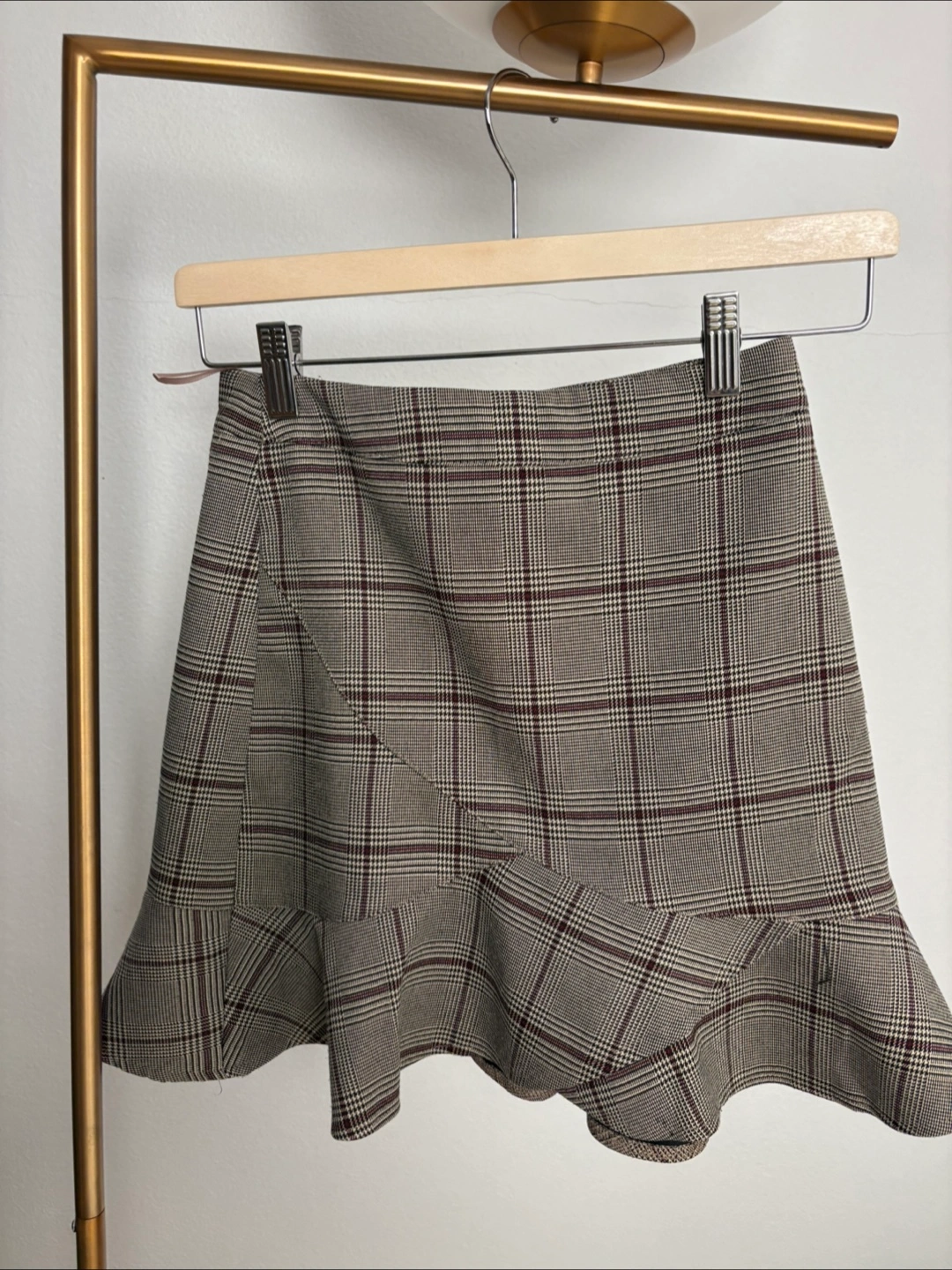 Selling a cute AIKE 蓉蓉 plaid skirt with a ruffle hem! It's a size small and in great condition. The plaid pattern is really stylish and the ruffle adds a fun touch!