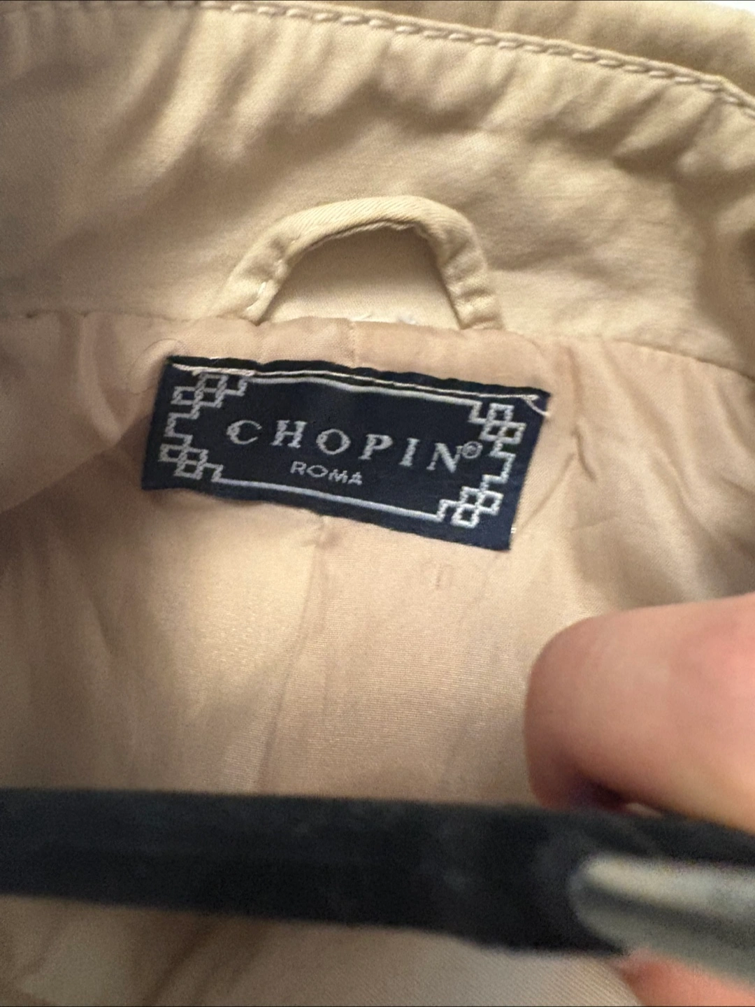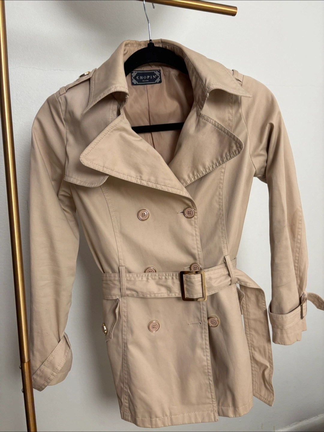Selling a stylish Chopin Roma trench coat in a lovely beige colour. It's in great condition and ready for a new home! Perfect for those fall days and evenings, this coat will add a touch of elegance to any outfit