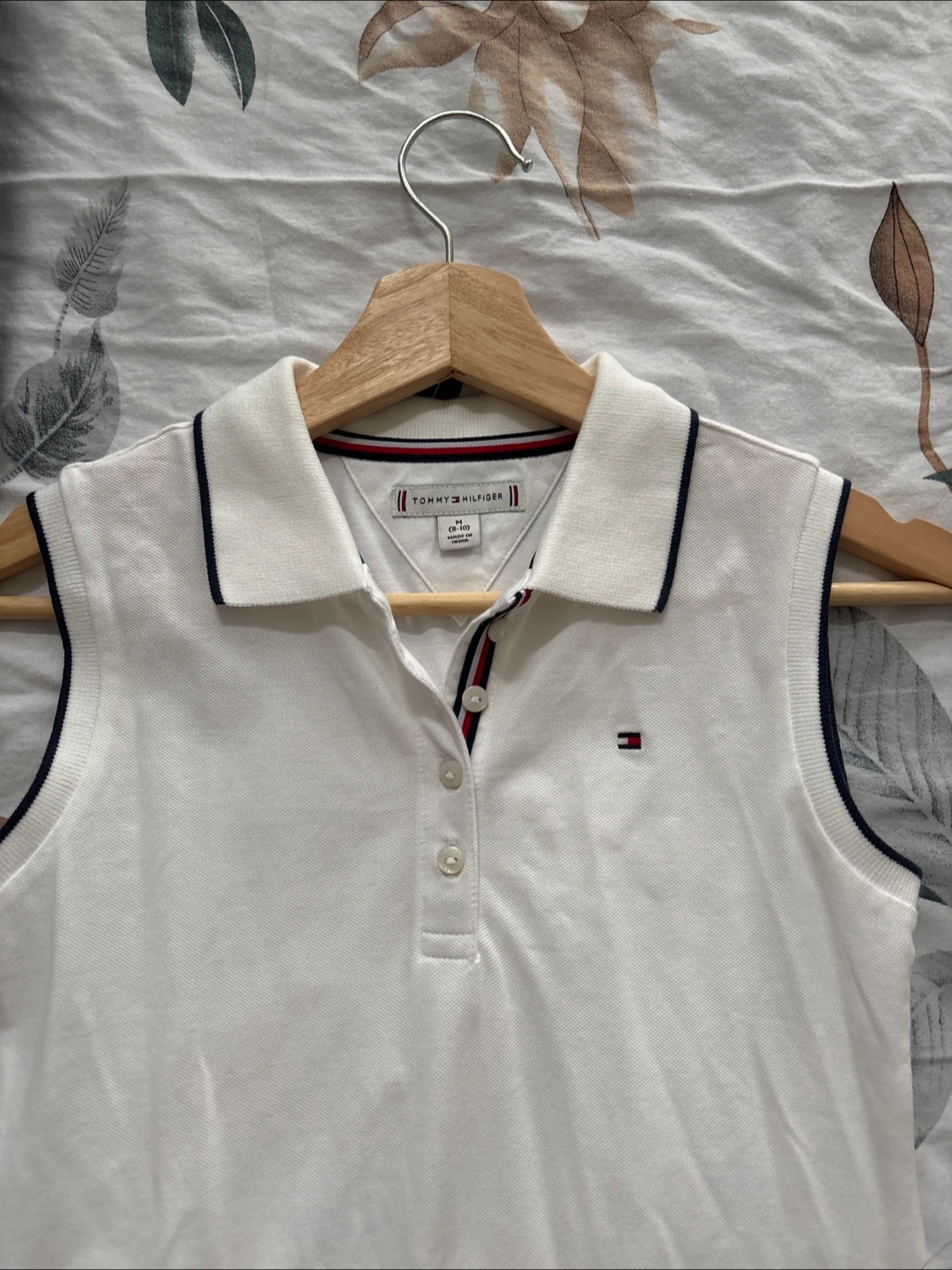 Selling a cute Tommy Hilfiger white polo dress! It's a size M (8-10) and features classic red, white, and navy detailing. Perfect for a sporty and preppy look!