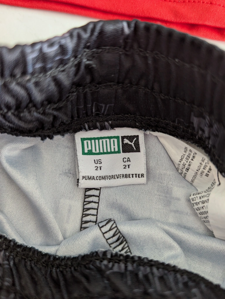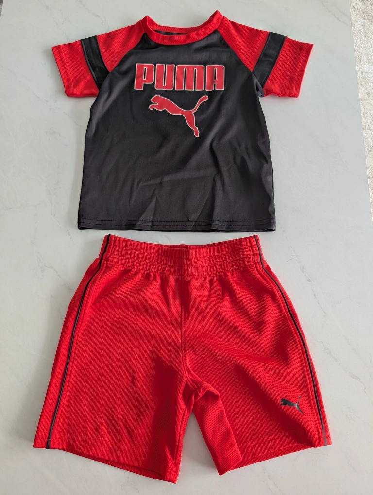 Two adorable Puma outfits in red and black. Both in excellent condition, size 2T. One is a tee and shorts set, the other a tank top and shorts.