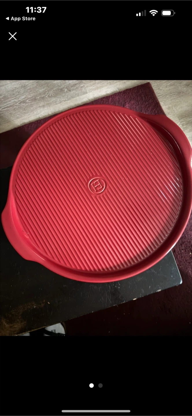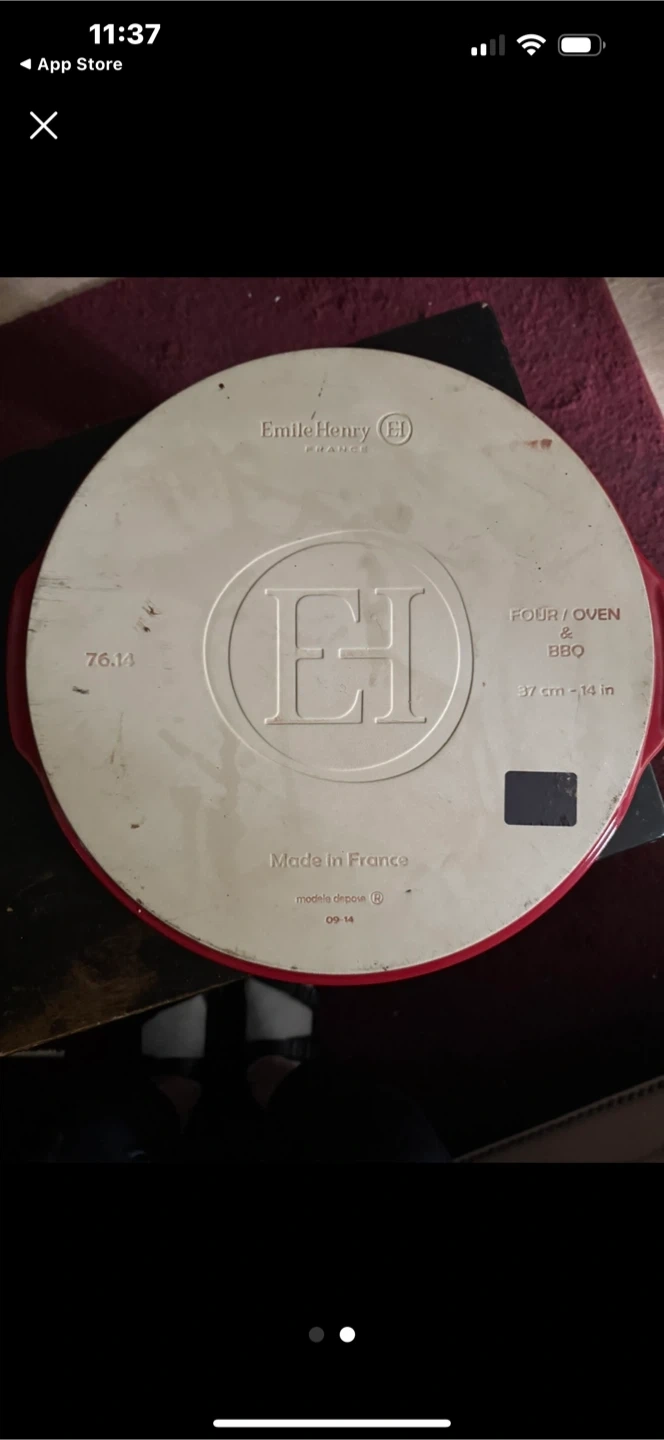 Selling an Emile Henry pizza stone! It's in great condition and ready for your homemade pizzas. This stone is 37 cm (approximately 14 inches) and perfect for oven or BBQ use