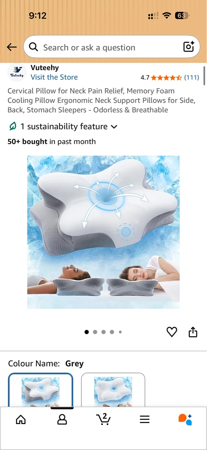 This Vuteehy cervical pillow offers neck pain relief. It's made of memory foam and is designed for side, back, and stomach sleepers. The pillow is cooling, ergonomic, and breathable.u