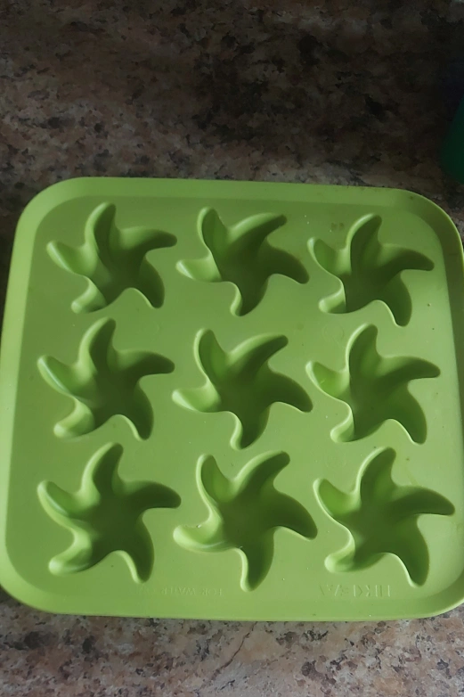I'm selling a fun starfish-shaped ice cube tray! It's in a bright green colour and would be perfect for summer drinks or parties. It's in great condition and ready to use for your next gathering
