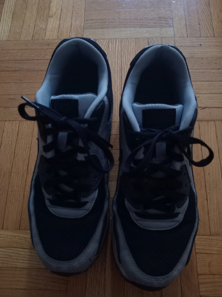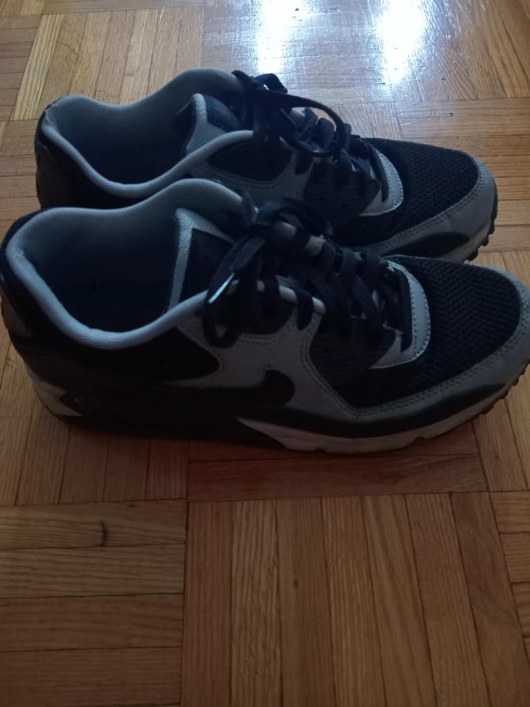 Selling a pair of Nike Air Max 90 sneakers in black and grey. They're in good condition with some signs of wear, as you can see in the photos. A classic and comfortable shoe!