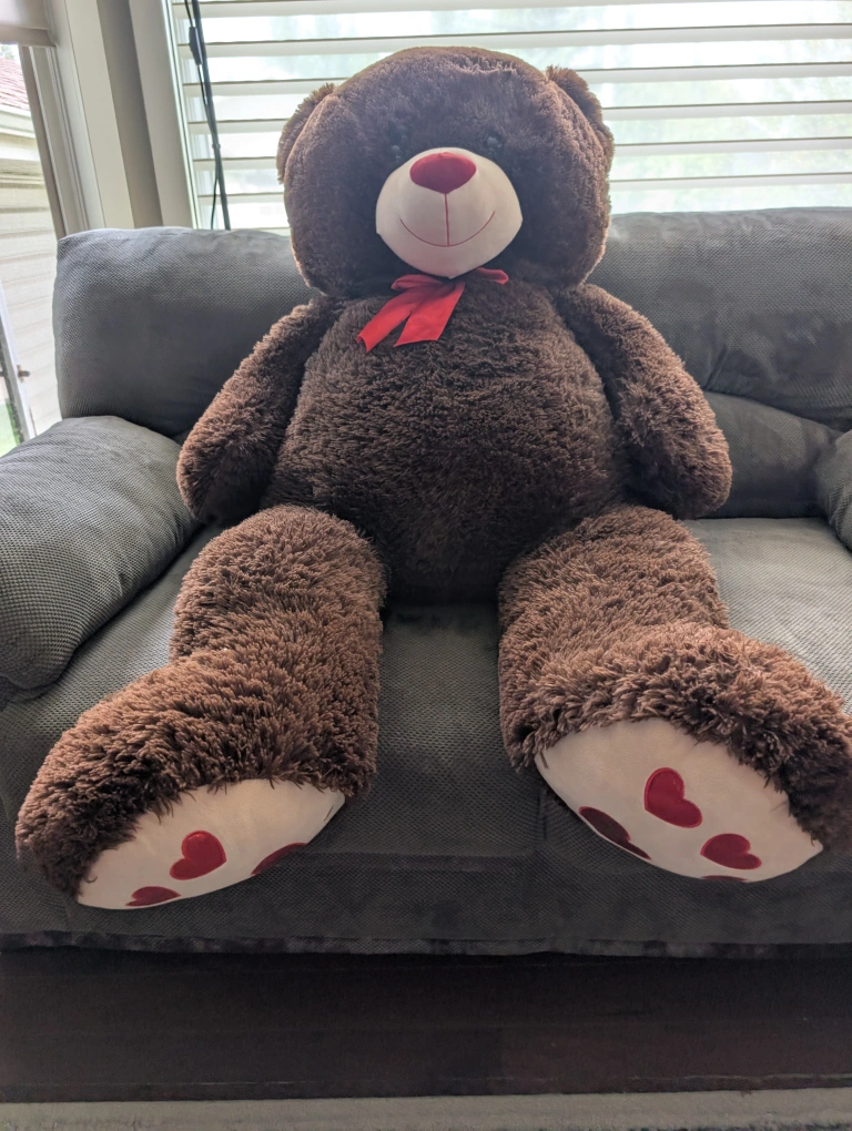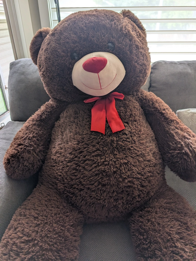 Looking to give this giant, cuddly brown teddy bear a new home! It's in great condition and ready for lots of hugs. Perfect for a cozy addition to any room!
