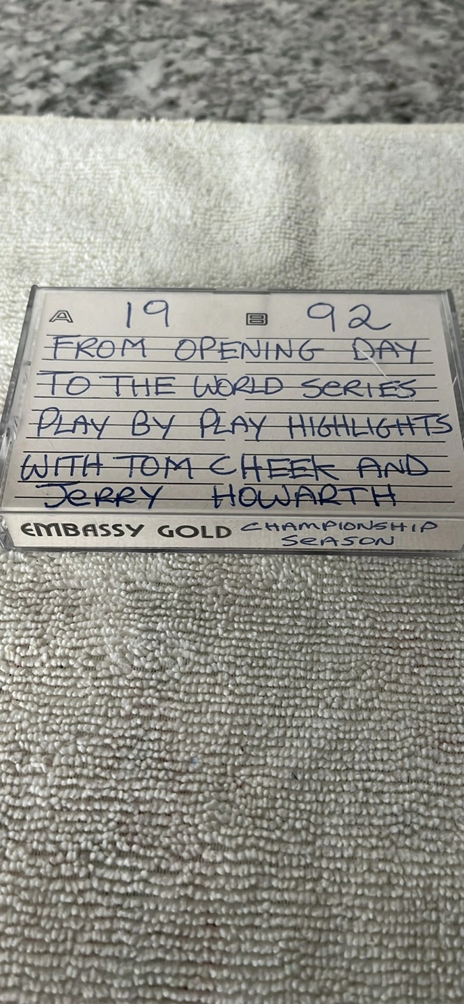 Selling a cassette tape from the 1992 Blue Jays season! It features play-by-play highlights with Tom Cheek and Jerry Howarth, covering the journey from opening day to the World Series. A great piece of memorabilia for any Jays fan!