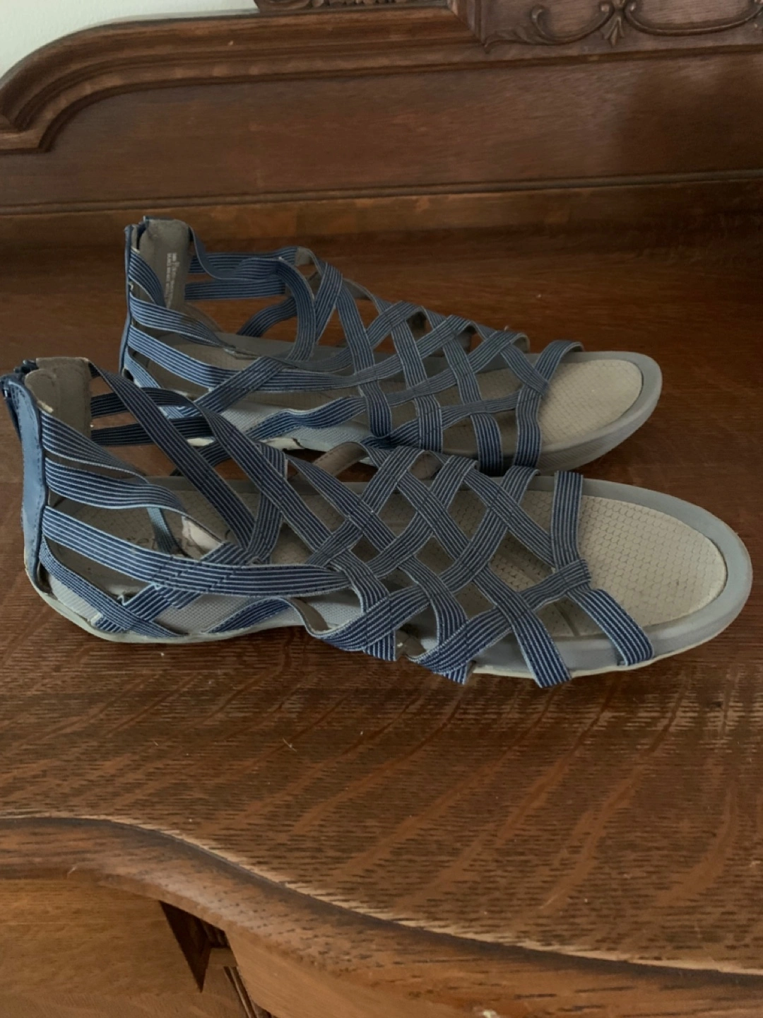86Selling a pair of Baretraps gladiator-style sandals in blue. They're a size 9 and feature a comfortable, strappy design. These sandals are perfect for adding a bit of flair to your summer outfits!