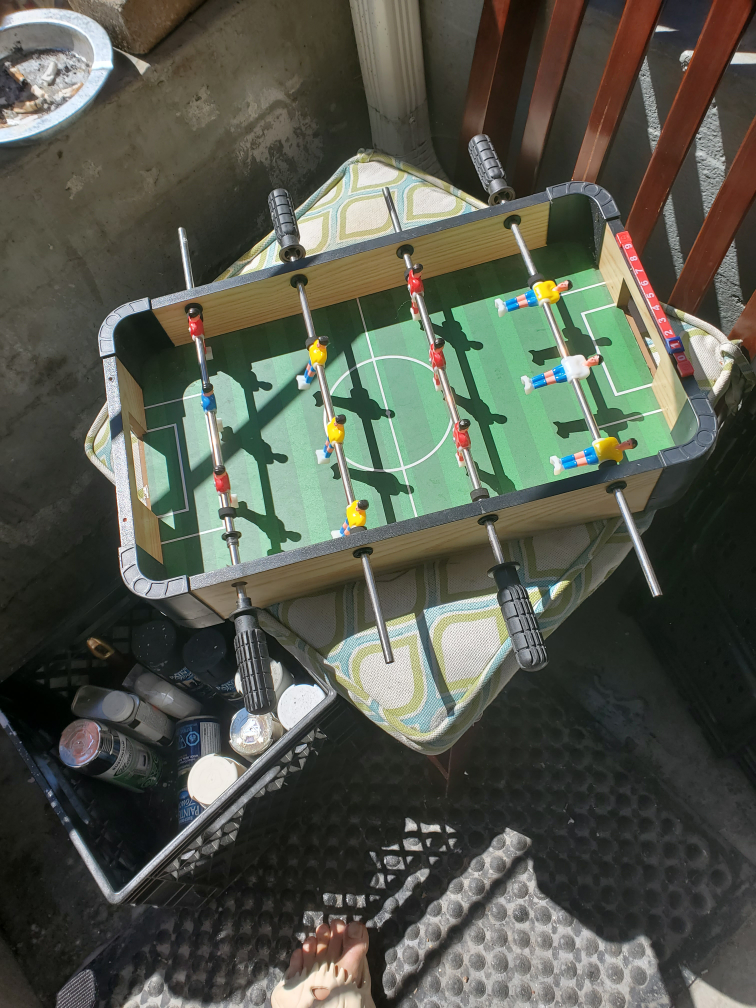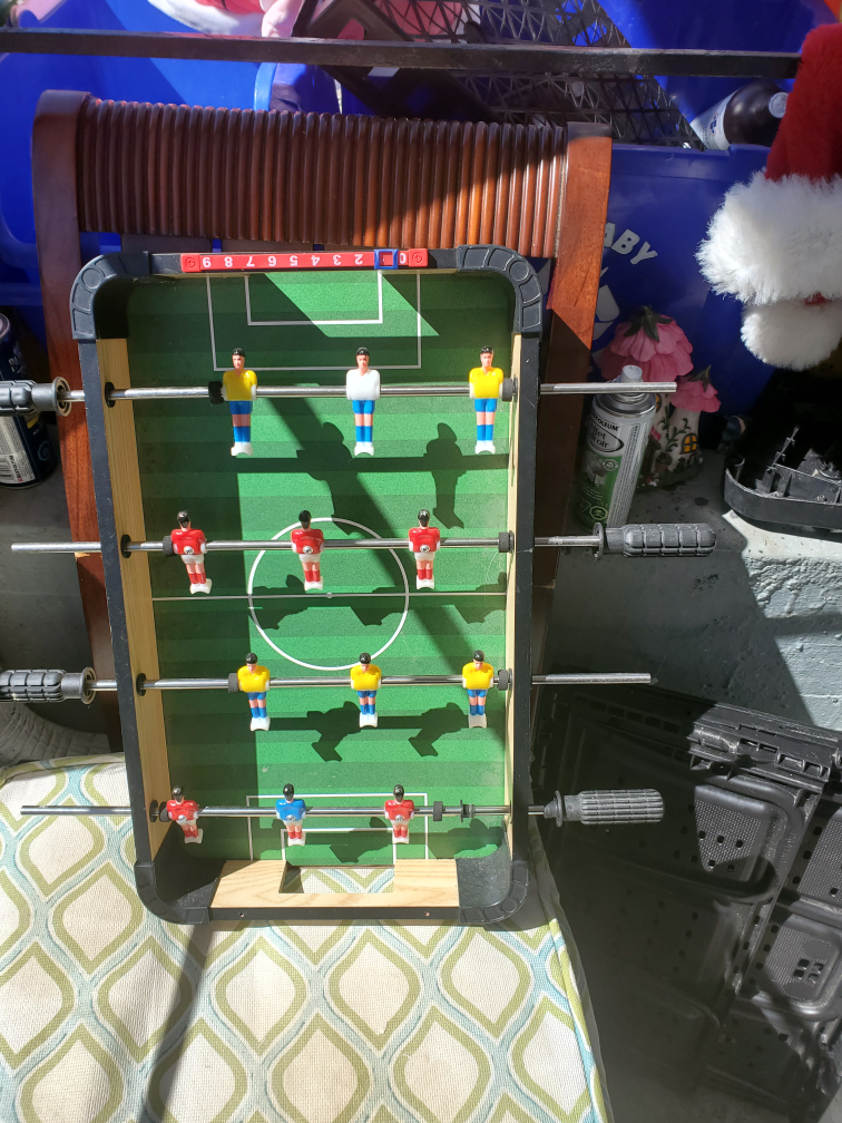 Selling a fun tabletop foosball table! It's in great shape and perfect for some friendly competition. It's compact enough to fit on a table or floor, and is a fun game for all ages