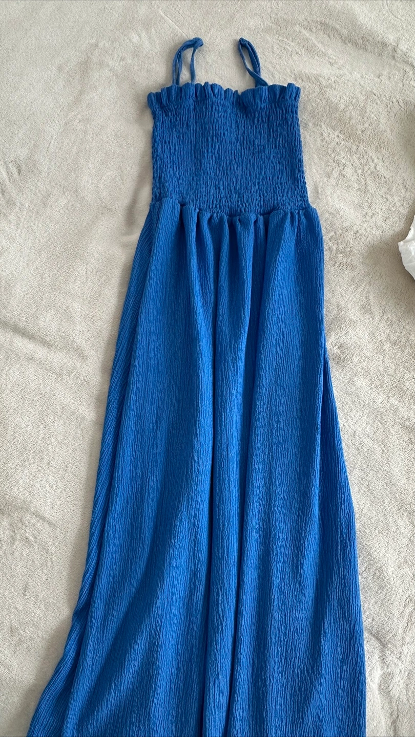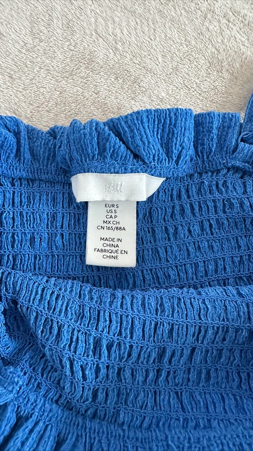 Selling a cute H&M blue smocked dress! It's a size small and in great condition. Perfect for summer days or a casual outing. The smocked bodice and flowy skirt make it super comfy and stylish