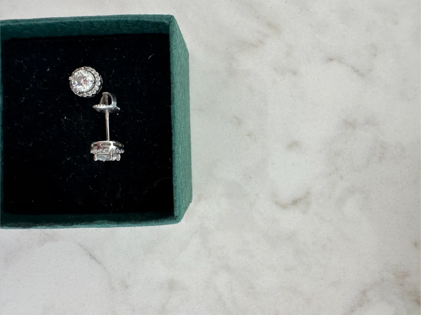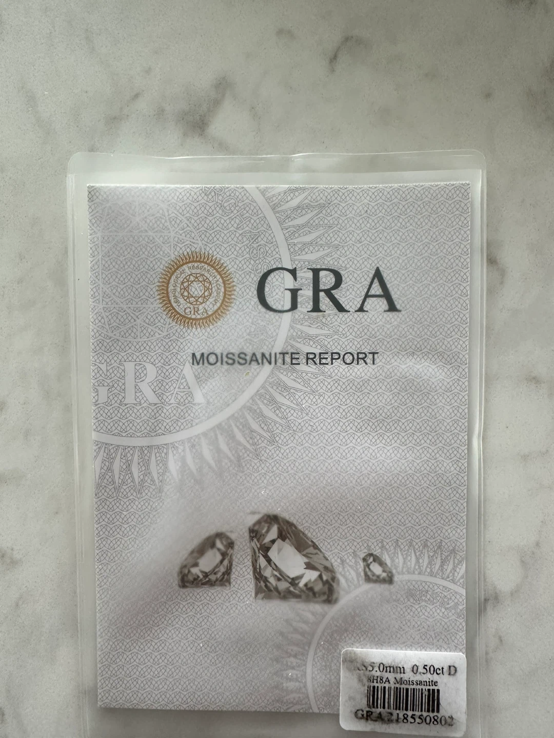 Selling a pair of moissanite earrings. They are 5.0mm, 0.50ct, and D colour grade. Comes with a GRA moissanite report and box