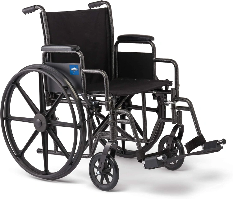 Medline Strong and Sturdy Wheelchair with Desk-Length Arms and Swing-Away Leg Rests for Easy Transfers, 16” Seat (K1166N22S)