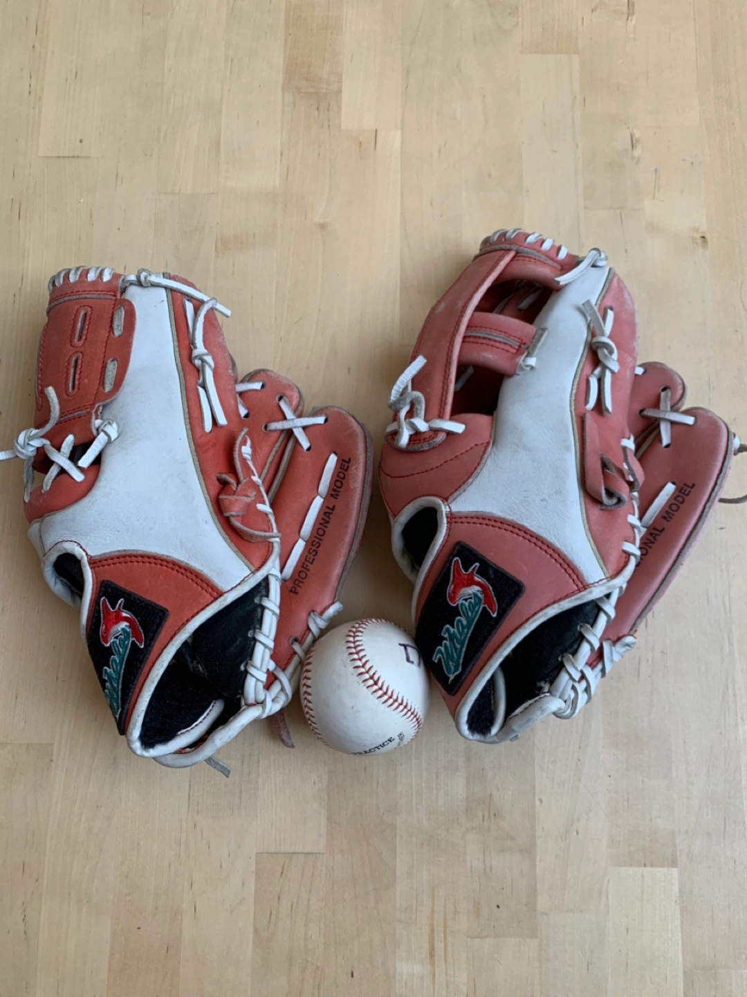 Selling a pair of Professional Model baseball gloves. They are in good condition for their age and come with a baseball. Perfect for a collector or someone looking to play some catch!