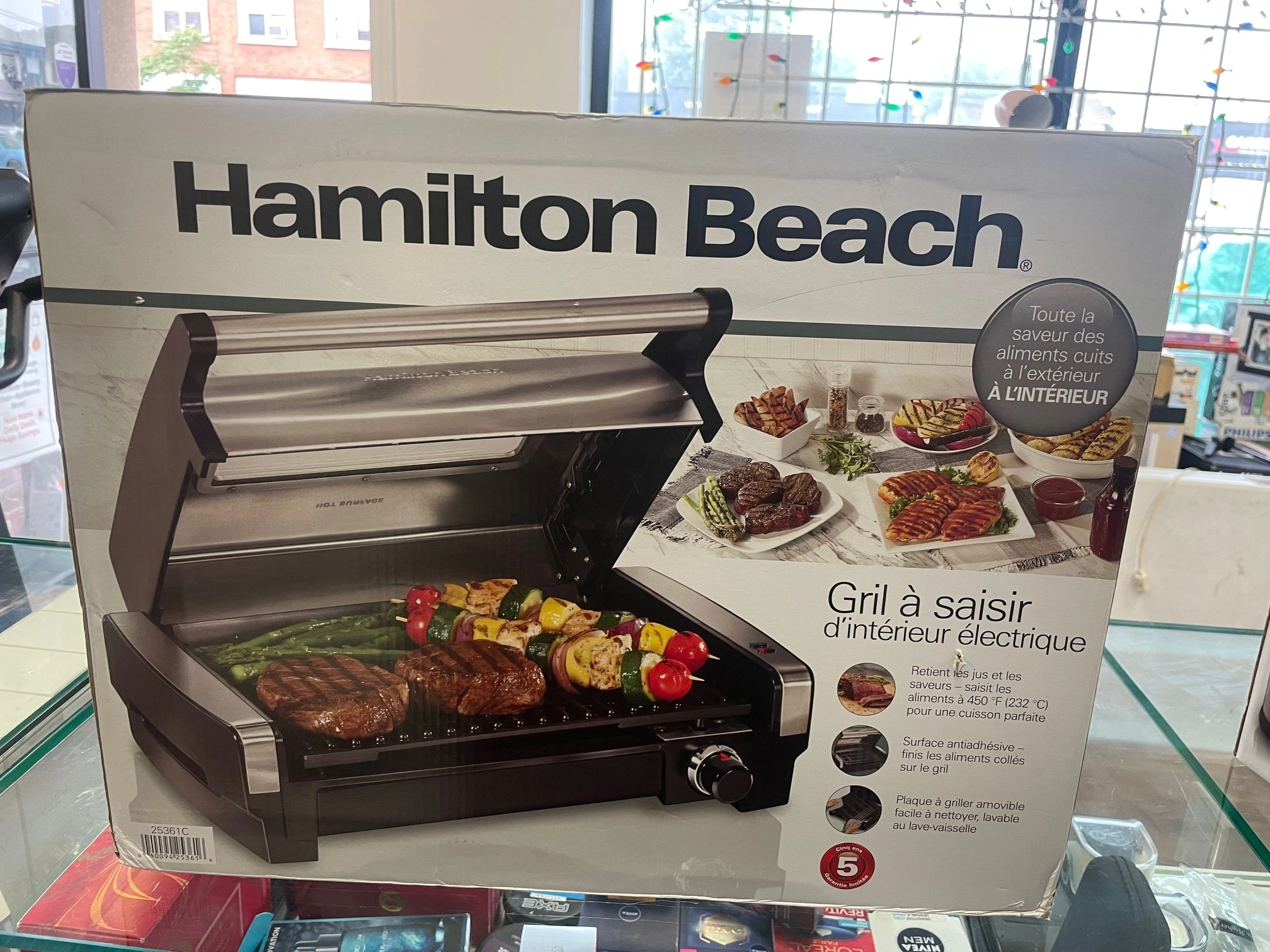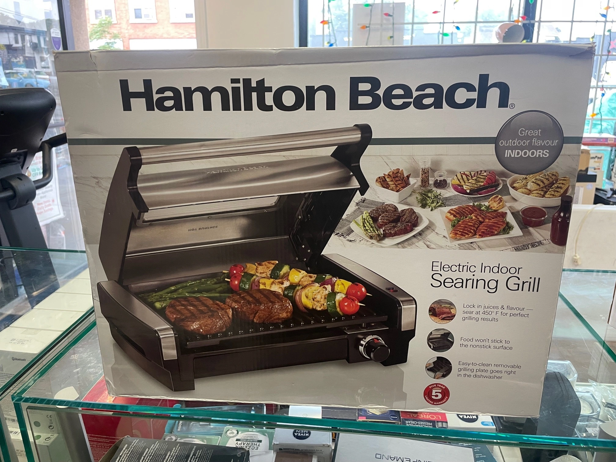 Enjoy grilling all year long: This indoor grill with hood has a high searing heat that locks in juices and flavors, and lid closes to give you signature grill marks. Serves up to 6 with 118 square-inch grilling surface.