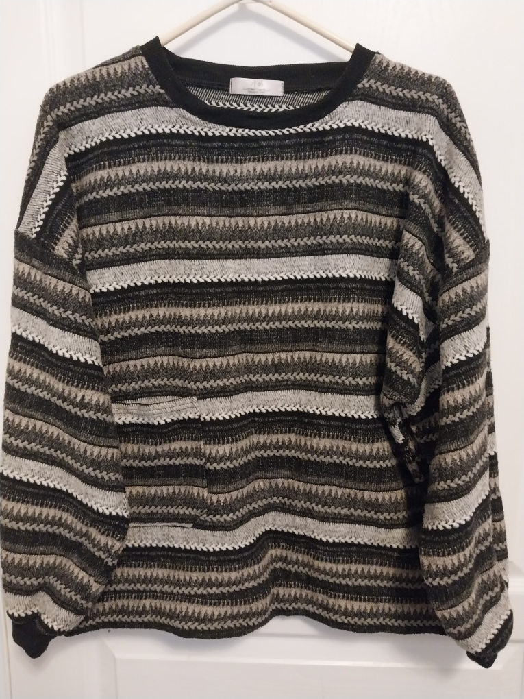 Vintage sweater with a unique striped pattern! It's in great condition and ready for a new home. the sweater is warm and comfy which makes it perfect for cold days!